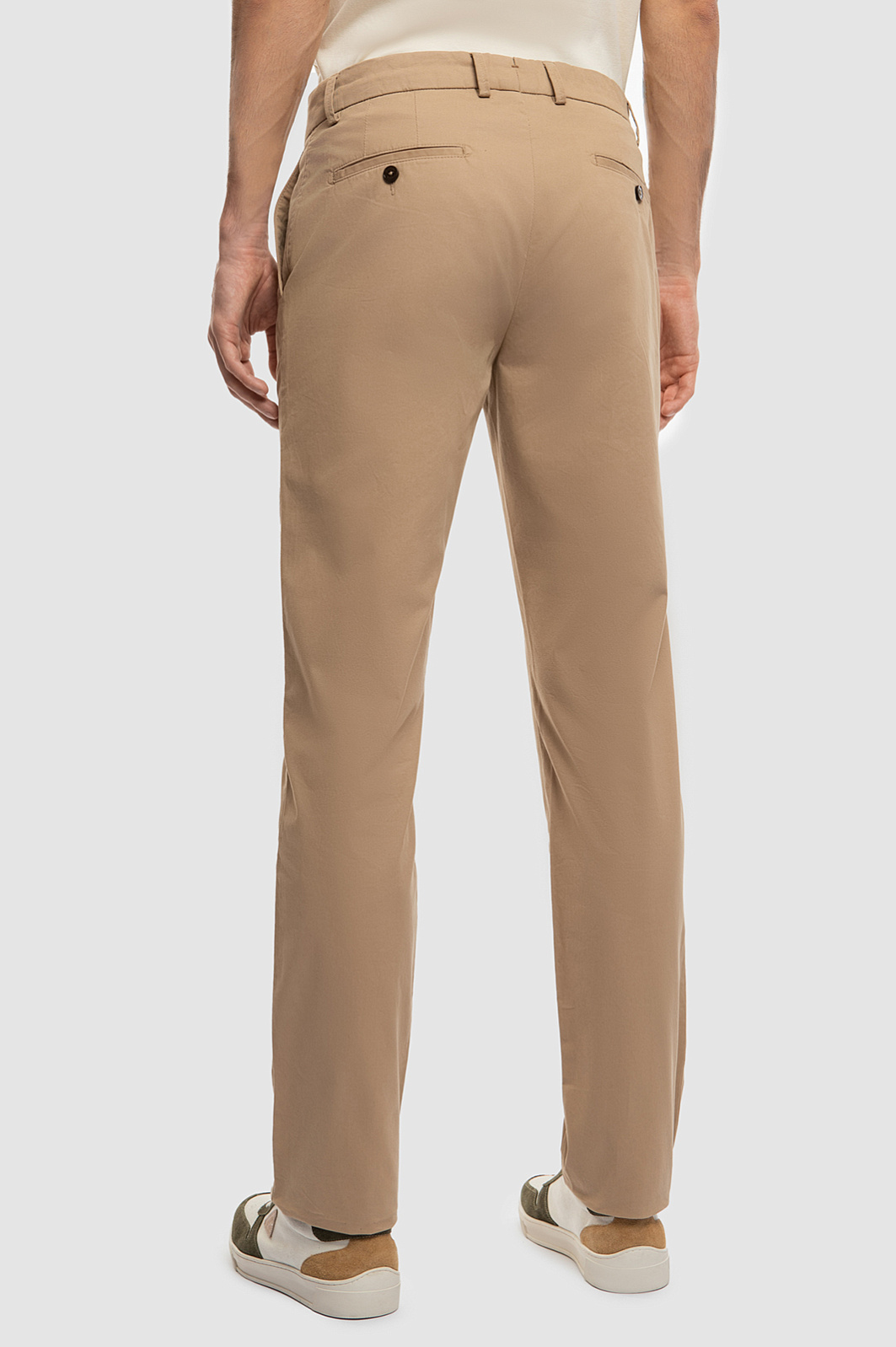 Элегантные брюки KANZLER теплого бежевого оттенка добавят образу мягкости и элегантности. Универсальная базовая модель прекрасно сочетается с футболкой, поло, рубашкой. Приталенный крой вытягивает силуэт вверх, делая его легким и динамичным. Небольшие акценты в виде вышитой фирменного инициала и металлического шильдика не нарушают общей лаконичности. Натуральная ткань со слегка шероховатой текстурой создана из гипоаллергенного воздухопроницаемого хлопка с небольшим добавлением эластана — для сохранения формы и хорошей посадки. Параметры модели: рост 192, 101-76-97 Размер на модели: 50