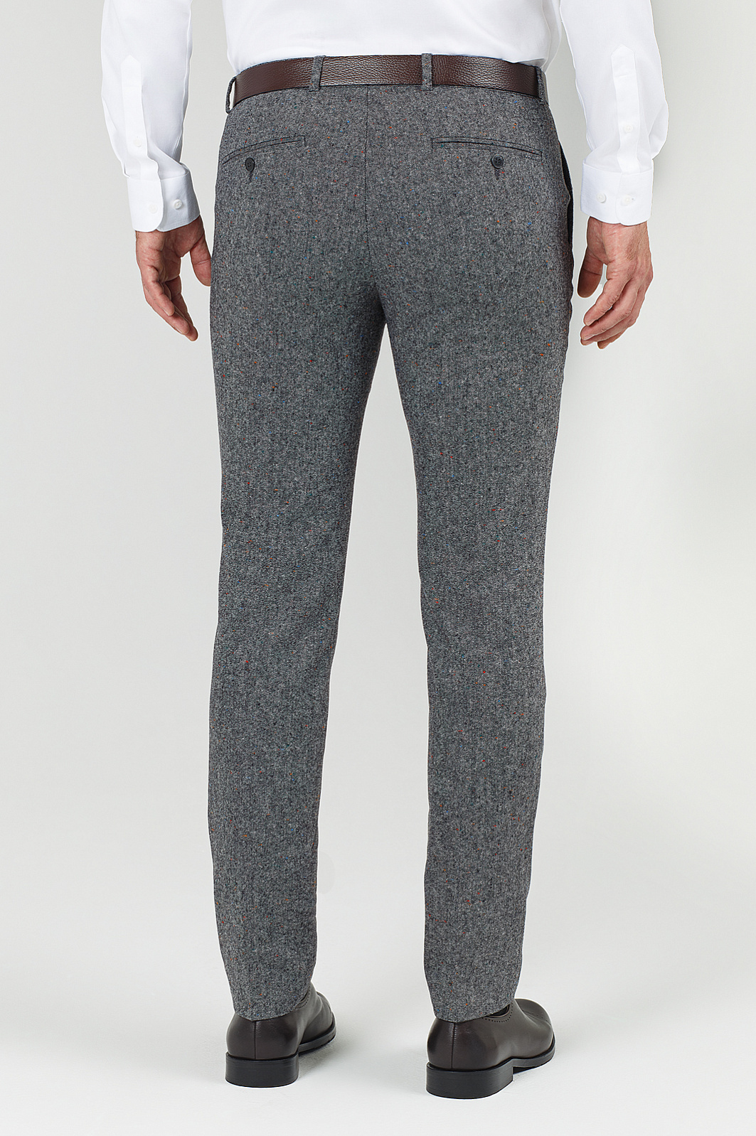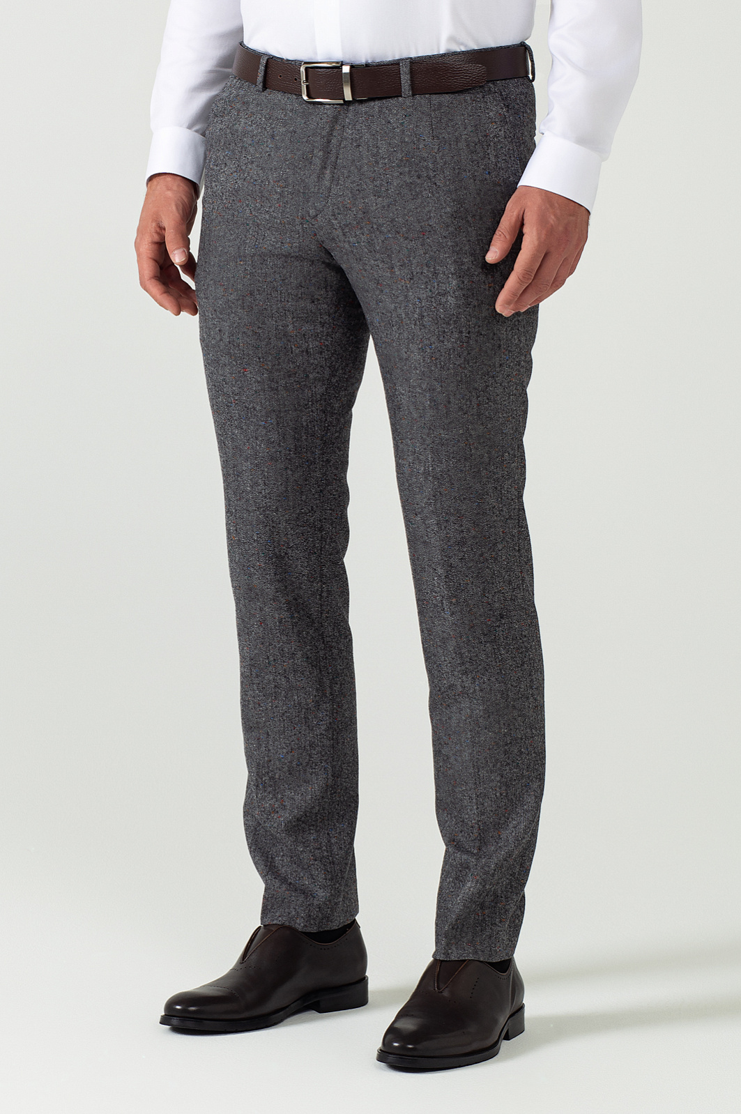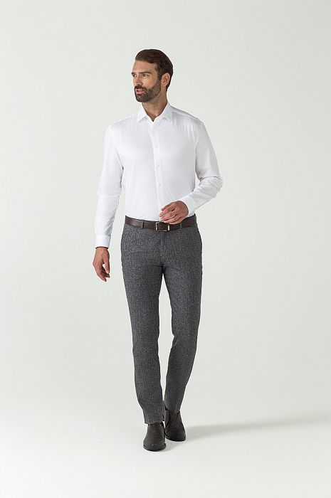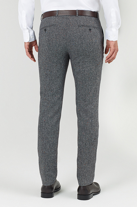 Классические приталенные брюки KANZLER — универсальная пара на каждый день. Модель из лимитированной коллекции из итальянской шерстяной ткани Bottoli. Выполнен из плотного и согревающего материала от итальянской фабрики Bottoli, известной своими премиальными тканями и оригинальными расцветками. Благодаря эластану в составе материал прекрасно тянется и идеально садится по фигуре. Обратите внимание на эффект разноцветных вкраплений, который создается благодаря особому переплетению нитей. Наши стилисты советуют дополнить изделие пиджаком в тон и белой классической сорочкой. Параметры модели: рост 189, 102-80-99 Размер на модели: 50