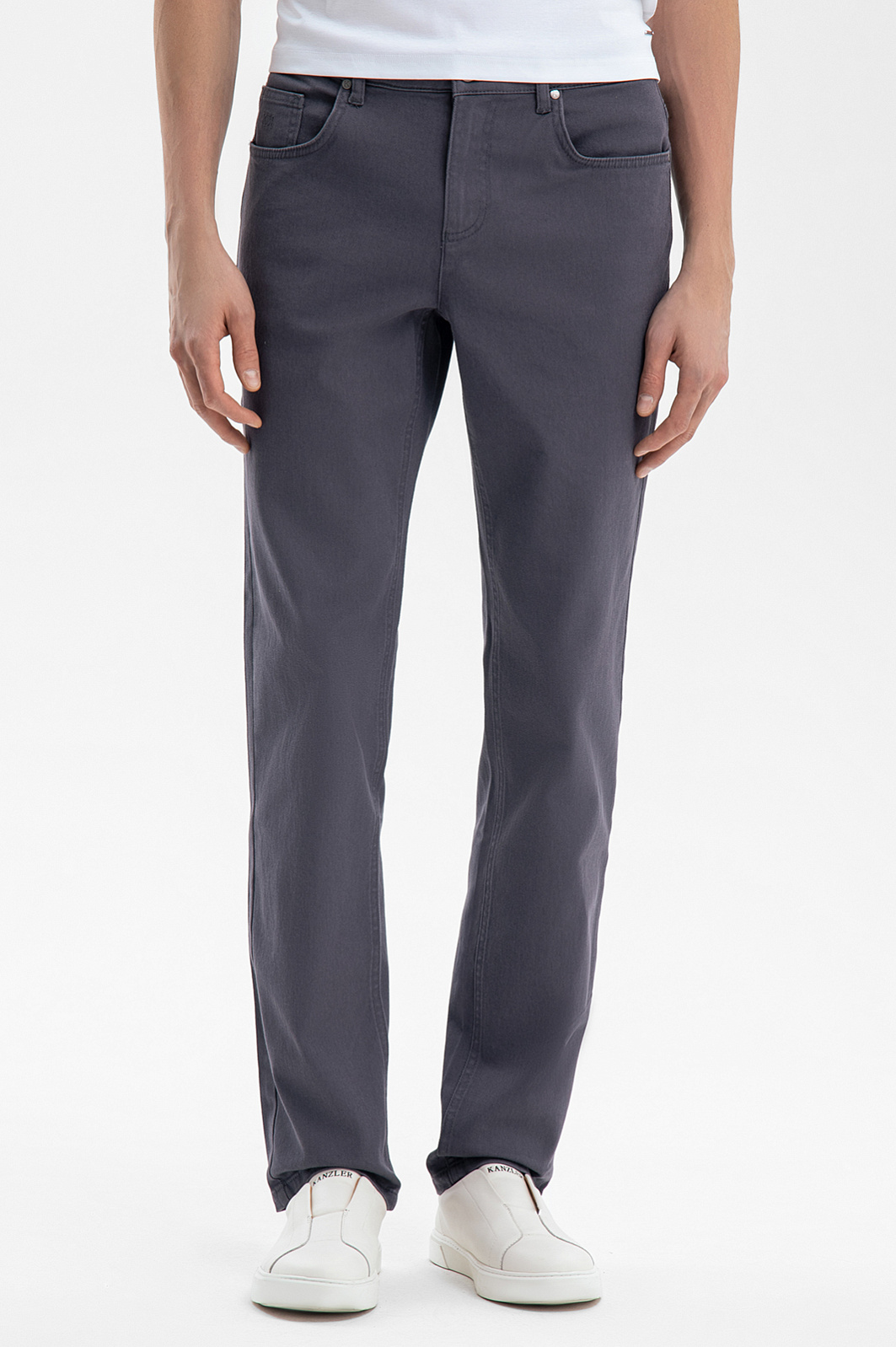 Серые брюки KANZLER – универсальная база для создания образов в стиле кежуал и умный кежуал. Лаконичный дизайн с пятью карманами гарантирует универсальность модели, позволяя создавать множество сочетаний. Материал но основе натурального хлопка обеспечивает идеальный воздухообмен и дарит комфорт в течение всего дня. Небольшое добавление эластана служит для идеальной посадки. Классический крой подходит большинству типов фигуры, обеспечивая свободу движения. Темно-серый оттенок сочетается с любыми цветами, от пастельных до насыщенных, и уместен в офисе, на прогулке или вечеринке. Параметры модели: рост 189, 91-78-95 Размер на модели: 50