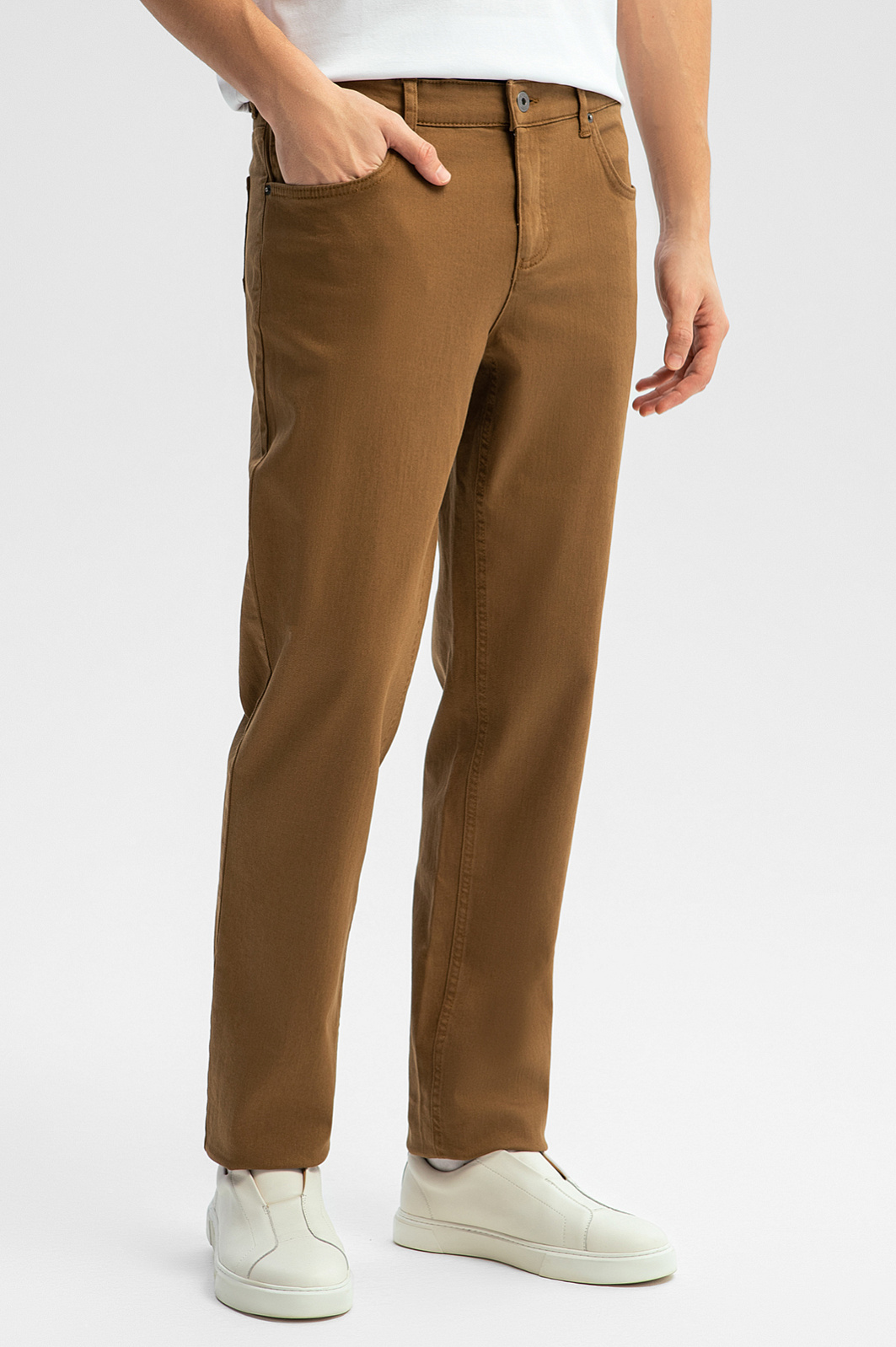Брюки из хлопка, цвет коричневый, цена 7 990 руб., код 269355 - купить в Санкт-Петербурге в интернет-магазине KANZLER