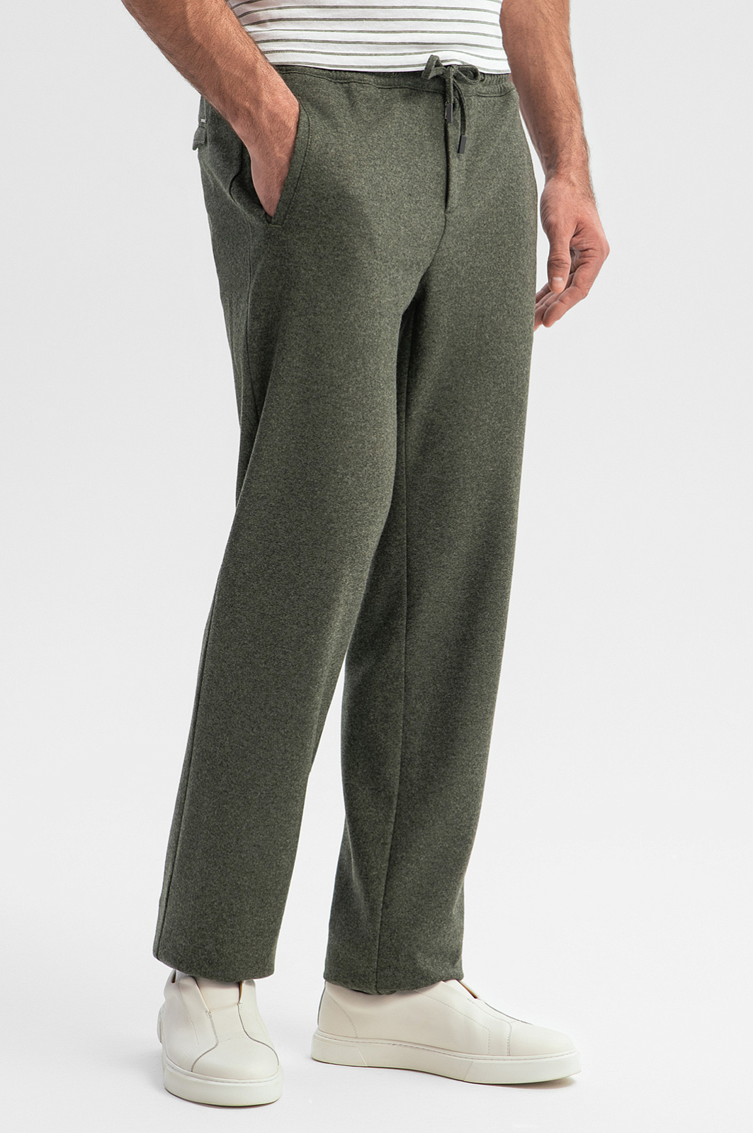 Брюки из итальянской шерстяной ткани Vitale Barberis, лимитированная коллекция, цвет зеленый, цена 14 990 руб., код 269368 - купить в Санкт-Петербурге в интернет-магазине KANZLER
