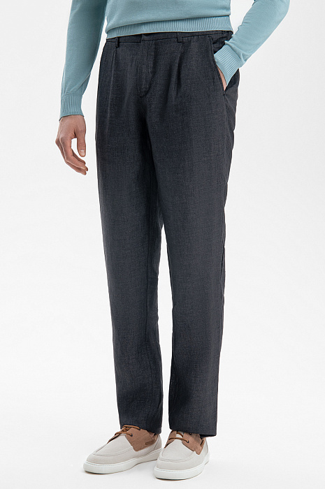 Брюки изо льна, лимитированная коллекция, цвет черный, цена 10 990 руб., код 269609 - купить в Санкт-Петербурге в интернет-магазине KANZLER
