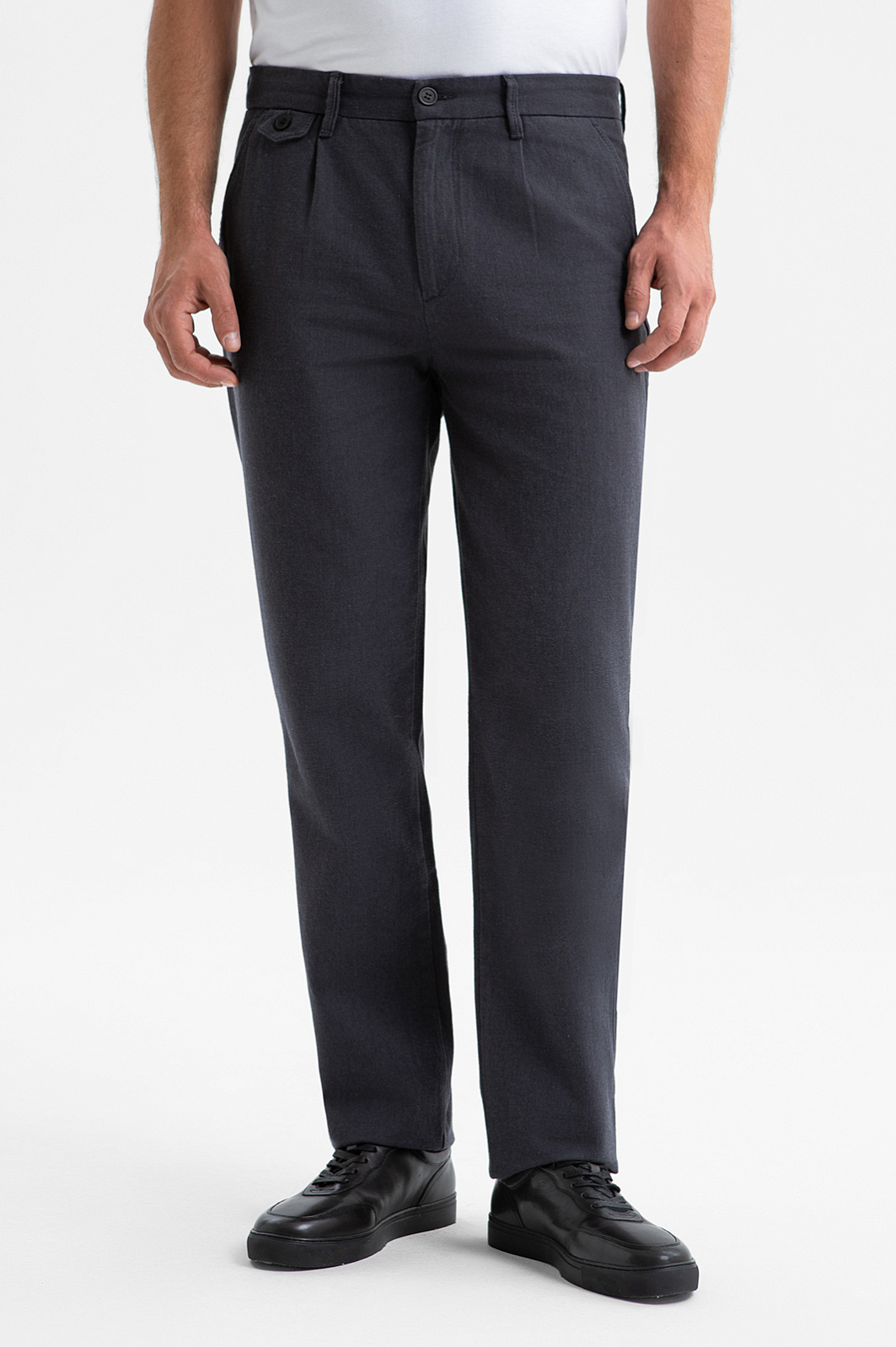 Серые брюки KANZLER из чистого хлопка станут отличным выбором для офисного гардероба, где важны комфорт и элегантность. Универсальный силуэт обеспечивает удобную посадку и свободу движений, сохраняя аккуратный вид брюк в течение всего дня. Внимание к деталям подчёркнуто небольшим декоративным клапаном с пуговицей у пояса. Брюки выполнены из 100% хлопка — природного гипоаллергенного материала, который хорошо пропускает воздух и поддерживает приятную для тела температуру. Прочная подкладка из смесового материала служит для долговечности при ежедневном ношении. Параметры модели: рост 189, 102-80-99 Размер на модели: 50