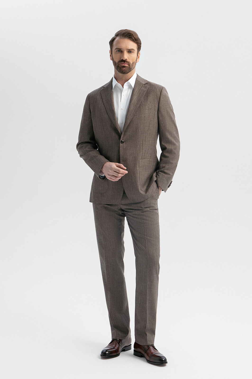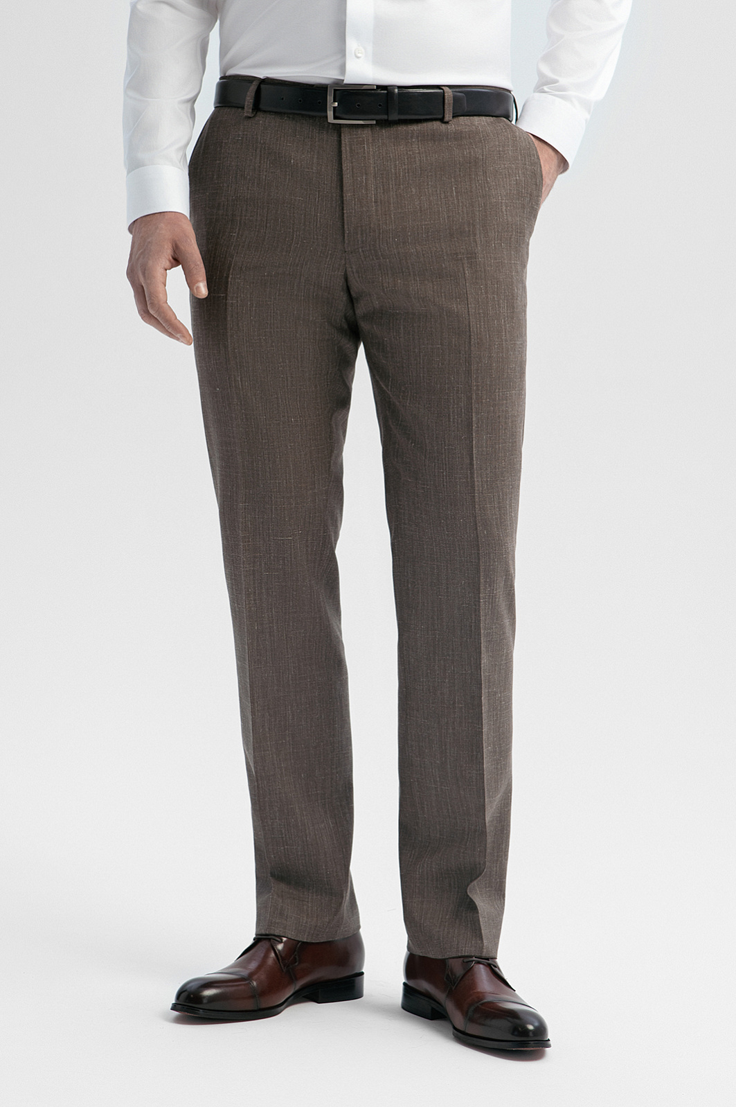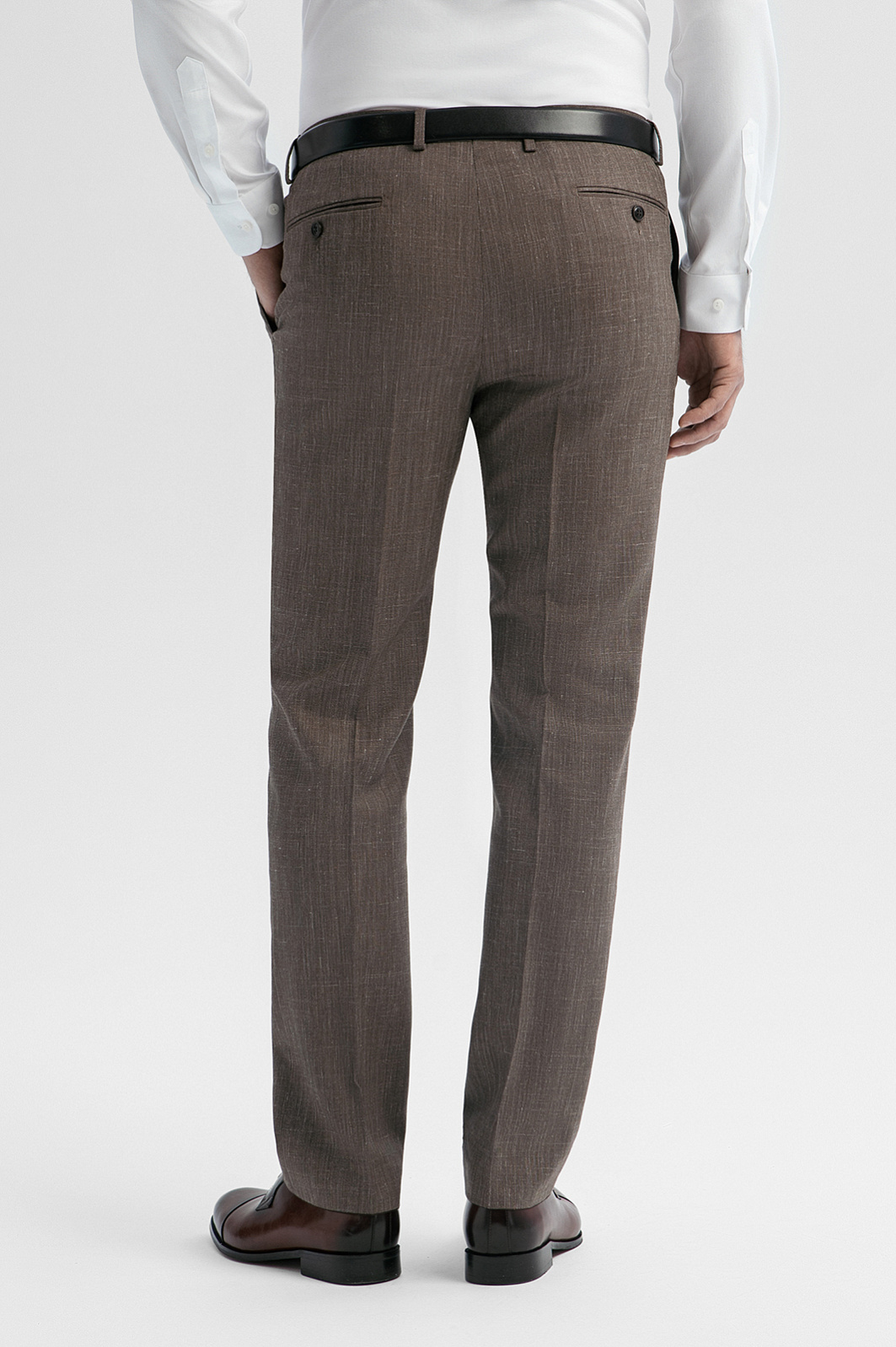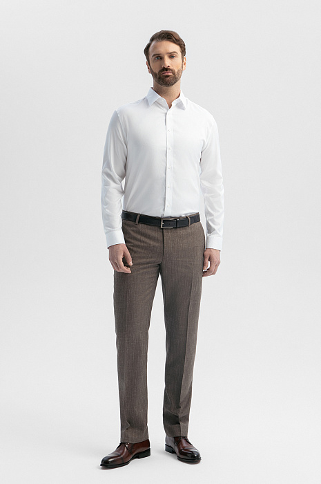 Брюки из шерсти, льна и шелка с водоотталкивающей обработкой, цвет коричневый, цена 17 990 руб., код 271023 - купить в Санкт-Петербурге в интернет-магазине KANZLER