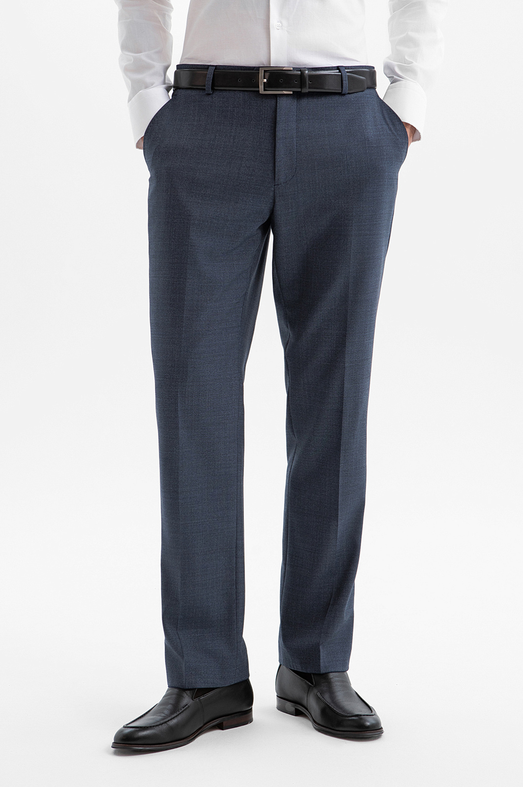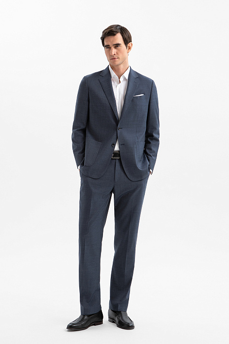 Брюки KANZLER из мягкой шерсти мериноса спокойного синего цвета адресованы адептам сдержанной роскоши и безупречного кроя. Если дополнить их пиджаком KANZLER из этой же ткани, получается выверенный и статусный костюм для деловых выходов, в котором каждая деталь работает на образ безупречной мужской элегантности. В более свободных сочетаниях — с сорочкой или тонким трикотажем — брюки подойдут для ужина в ресторане и светских встреч. Слегка зауженный силуэт подчёркивает линию ног, формируя собранный, уверенный образ, а чёткие стрелки придают фигуре стройность. Тонкая костюмная ткань Супер 120S сделана из драгоценной шерсти мериноса. Она приятно облегает тело и сохраняет ощущение комфорта на протяжении всего дня. Водоотталкивающая обработка защищает брюки от капризов погоды и помогает сохранить безупречный вид в поездках и путешествиях.