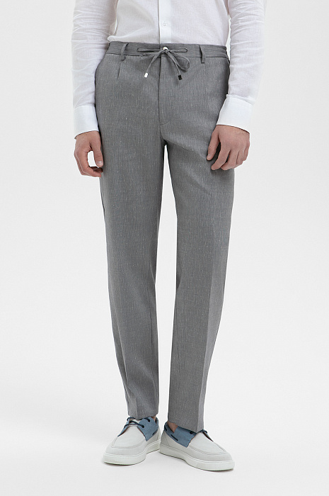 Брюки из шерсти, льна и шелка, цвет серый, цена 17 990 руб., код 271038 - купить в Санкт-Петербурге в интернет-магазине KANZLER