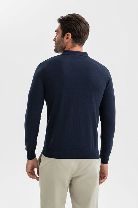Джемпер поло из хлопка Пима, цвет синий, цена 9 990 руб., код 270242 - купить в Санкт-Петербурге в интернет-магазине KANZLER