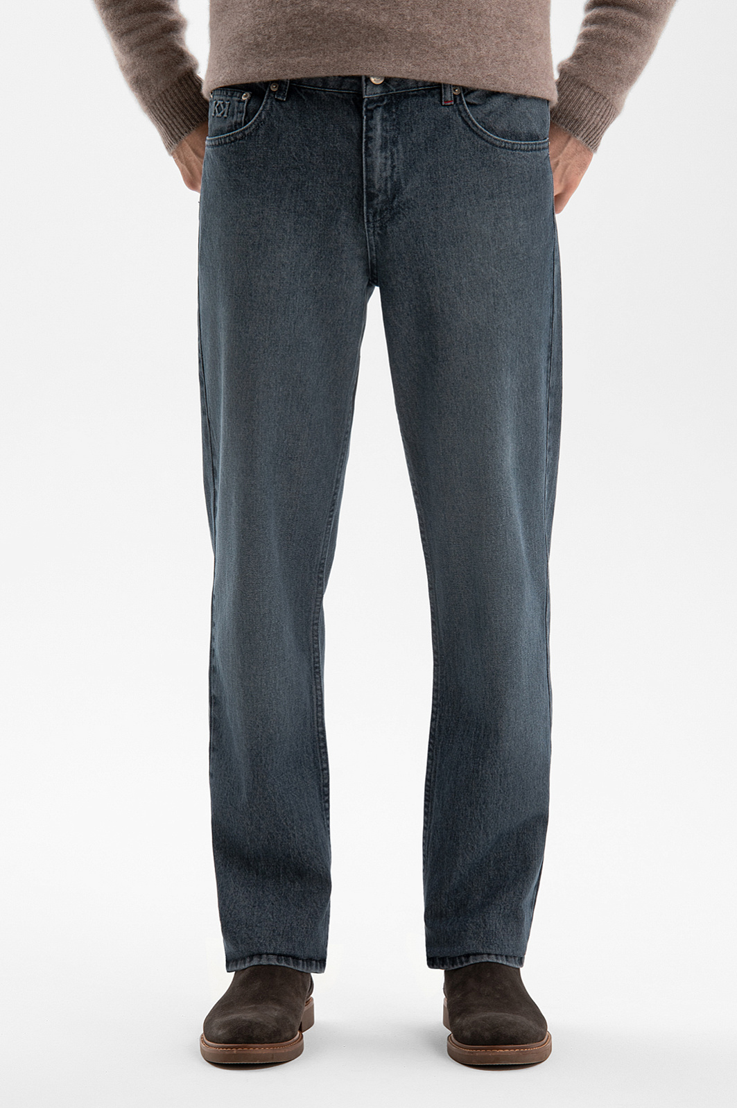 Джинсы KANZLER традиционного кроя с пятью карманами в спокойном серо-голубом оттенке — вневременная классика повседневного гардероба. Прямой силуэт формирует удобную посадку, делая модель универсальной для любого типа комплекции. Тиснёный инициал на «кармане для мелочи» и полукруглая фирменная нашивка на заднем кармане служат декоративными акцентами и отмечают принадлежность к бренду, не нарушая сдержанной эстетики. Деним из гипоаллергенного хлопка (99%) с добавлением эластана (1%) — не только приятный к телу, мягкий и дышащий, но и достаточно пластичный материал.