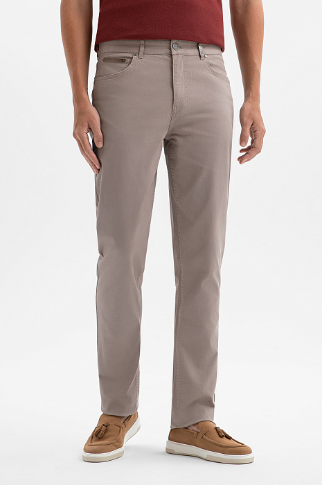 Классические джинсы KANZLER с пятью карманами — база для тёплых дней. Светло-бежевый оттенок придаёт брюкам элегантность, позволяя создавать лёгкие и стильные повседневные образы. Универсальный прямой крой от бедра до щиколотки обеспечивает естественную посадку и вытягивает силуэт. Фирменные заклёпки, пряжка на шлёвке и нашивка на кармане служат неброскими акцентами, которые украшают модель и подчёркивают внимание к деталям. Плотный деним создан из гипоаллергенного хлопка (98%) с добавлением эластана (2%). Такой состав делает ткань мягкой, дышащей, прочной и устойчивой к деформации.