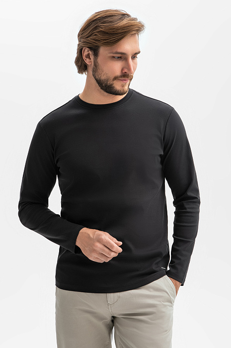 Лонгслив из хлопка, цвет черный, цена 6 990 руб., код 268658 - купить в Санкт-Петербурге в интернет-магазине KANZLER