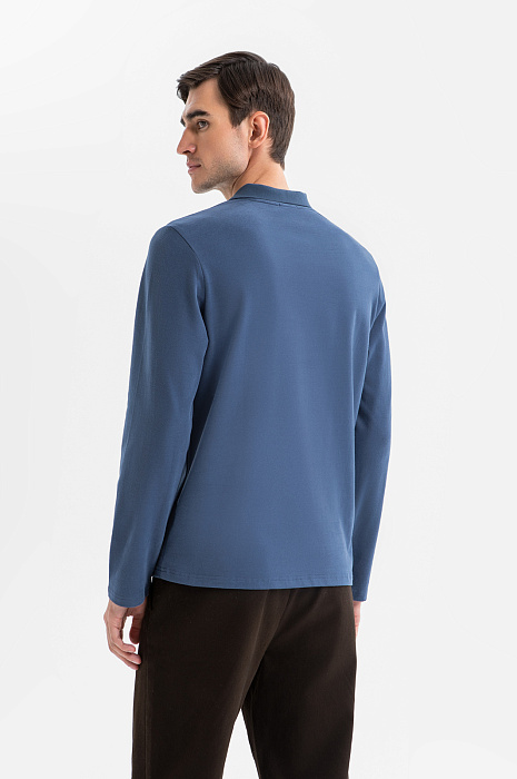 Лонгслив поло из хлопка, цвет голубой, цена 4 990 руб., код 270020 - купить в Санкт-Петербурге в интернет-магазине KANZLER