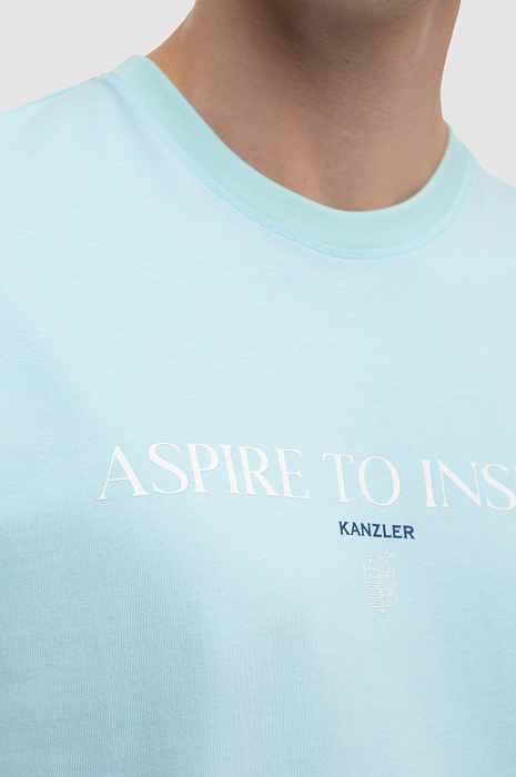 Футболка KANZLER красивого светло-бирюзового оттенка из чистого хлопка украшена слоганом и небольшим фирменным логотипом. Она идеально подойдет для активного отдыха — прогулок по городу, уик-энда на природе и пляжных вечеринок. Прилегающий крой подчеркивает достоинства спортивной фигуры и не сковывает движений. 100-процентный хлопок высокого качества бережет тело от солнца и прохлады. Гипоаллергенные дышащие волокна создают циркуляцию воздуха, оптимальный микроклимат и отводят влагу. Параметры модели: рост 191, 97-77-99 Размер на модели: M