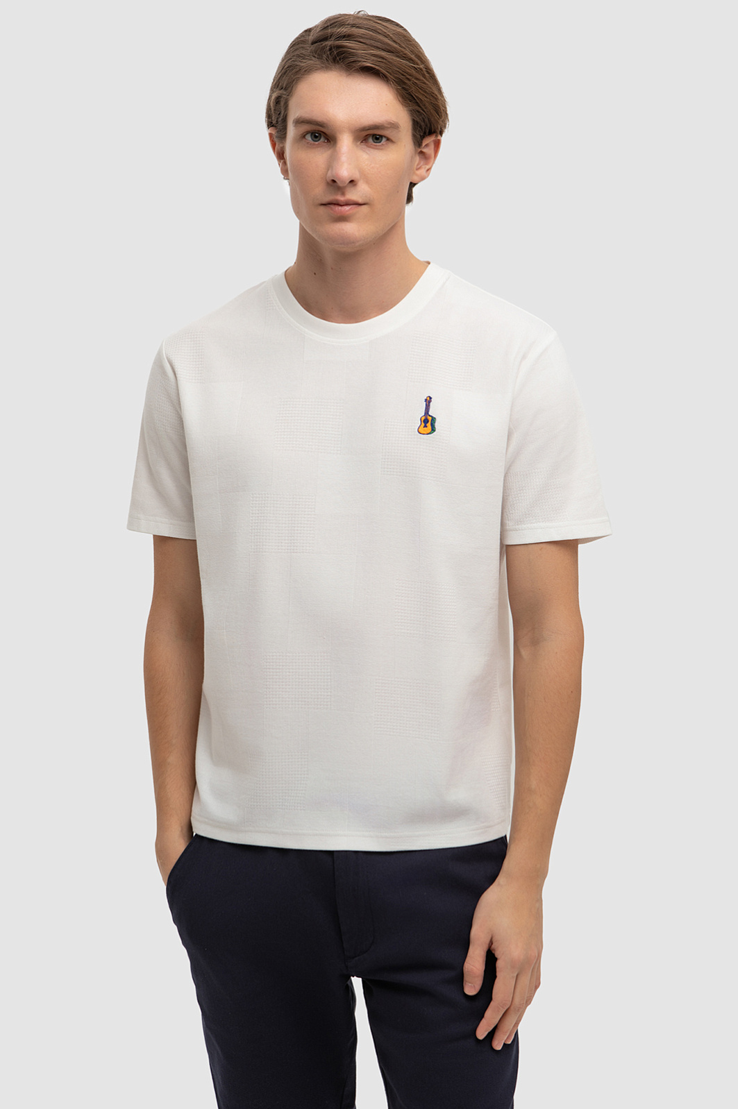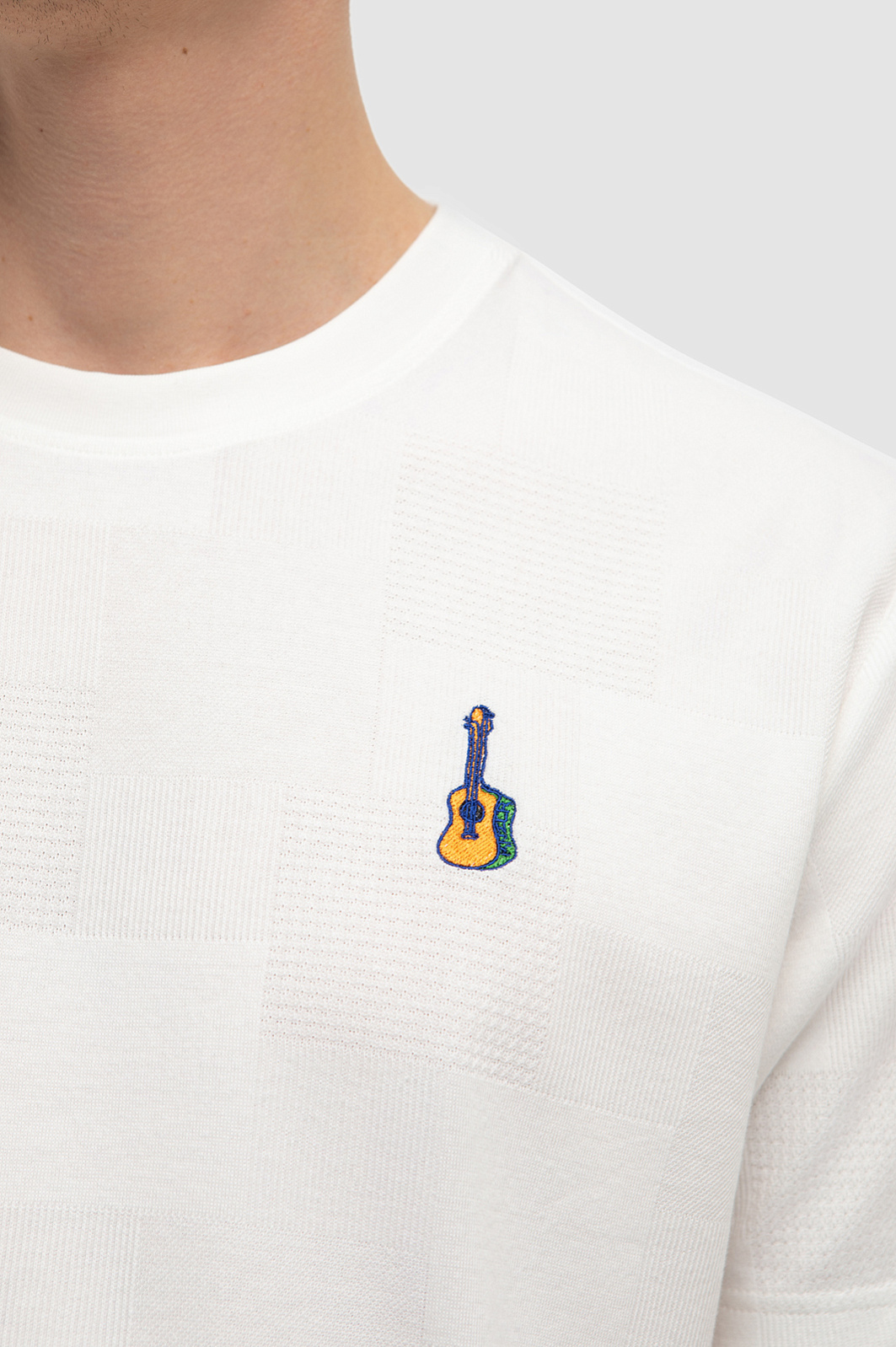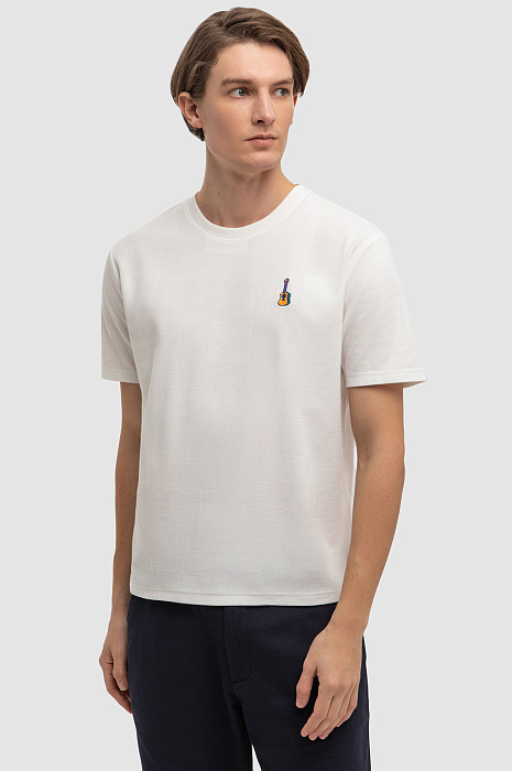 Дизайнеры украсили белую футболку KANZLER с круглым вырезом из 100-процентного текстурного хлопка вышитой гитарой. Небольшой символ призван рассказать окружающим о любви к музыке. Футболка незаменима на отдыхе — для неспешных прогулок, встреч и пляжных вечеринок. Мягкий рельефный трикотаж не ограничивает свободу движений. Превосходный чистый хлопок создает барьер для зноя и прохлады. Гипоаллергенные волокна хорошо пропускают воздух, поддерживают приятную для тела температуру и отводят влагу. Параметры модели: рост 191, 97-77-99 Размер на модели: M