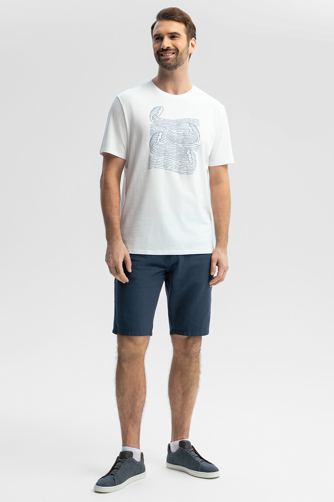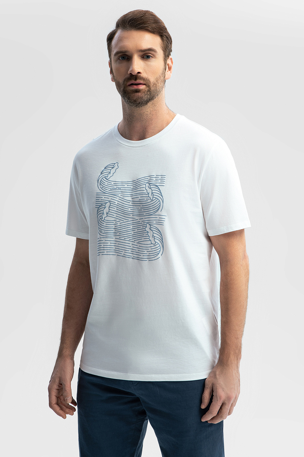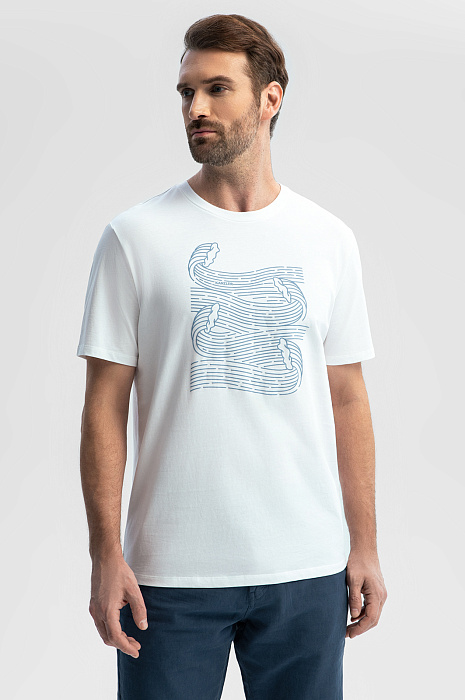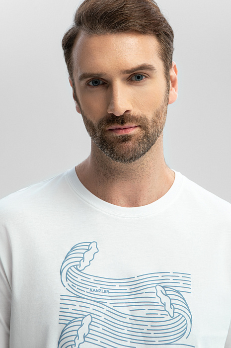 Белая футболка KANZLER с морским принтом – ваш персональный океан, который всегда рядом. Волны, словно застывшие в движении, добавляют образу динамики и вдохновляют отправиться в путешествие. Модель выполнили из экологичного 100-процентного хлопка, нежно обволакивающего кожу. Гипоаллергенный материал обеспечивает комфорт в течение всего дня, не вызывая раздражений. Крой Comfort fit – идеальный выбор для любых летних активностей – сохраняет свободу, не ограничивая движений. Сочетайте модель с брюками-чинос для повседневного городского образа или дополните шортами-бермудами и сандалиями для прогулки по набережной.