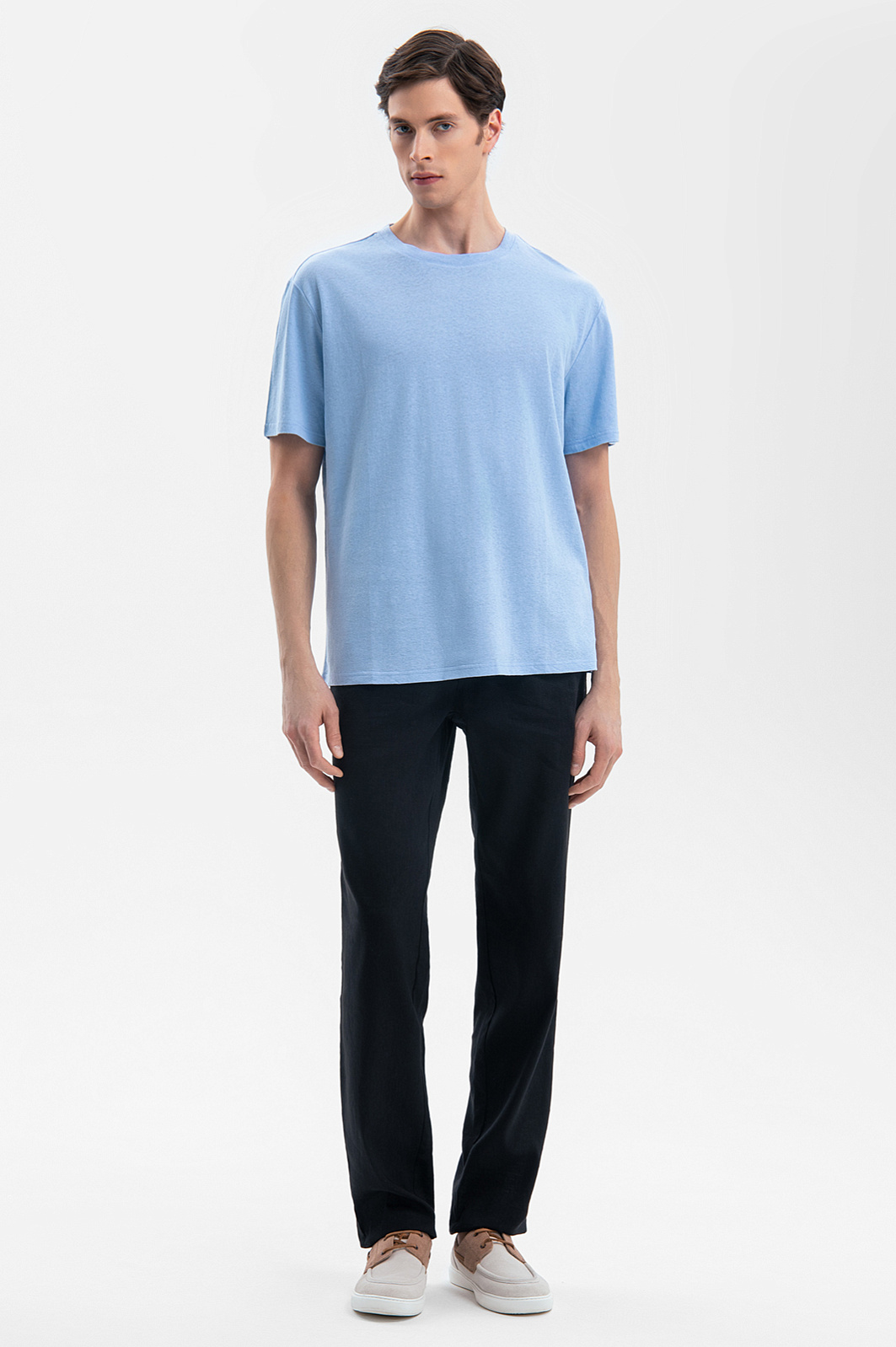 Свободная голубая футболка KANZLER изо льна и хлопка идеальна для активного образа жизни: прогулок, путешествий, работы на свежем воздухе. Легкий и дышащий материал – гарантия комфорта даже в самый жаркий день. Гигроскопичные волокна льна быстро впитывают влагу и охлаждают кожу, а хлопок придает материалу мягкость. Comfort fit – крой, объединяющий комфорт и безупречный стиль: свободный силуэт мягко обволакивает тело, не стесняя движений. Натуральная фактура льна придает образу ненавязчивый богемный шарм. Дополните футболку бежевыми чиносами, песочными шортами-бермудами или темными льняными брюками.