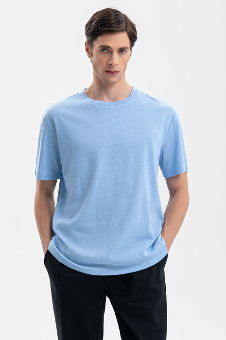 Футболка изо льна и хлопка, цвет голубой, цена 3 990 руб., код 269249 - купить в Санкт-Петербурге в интернет-магазине KANZLER