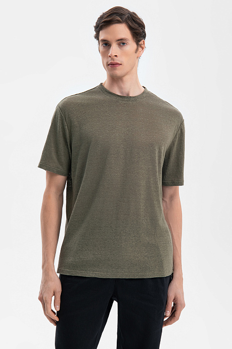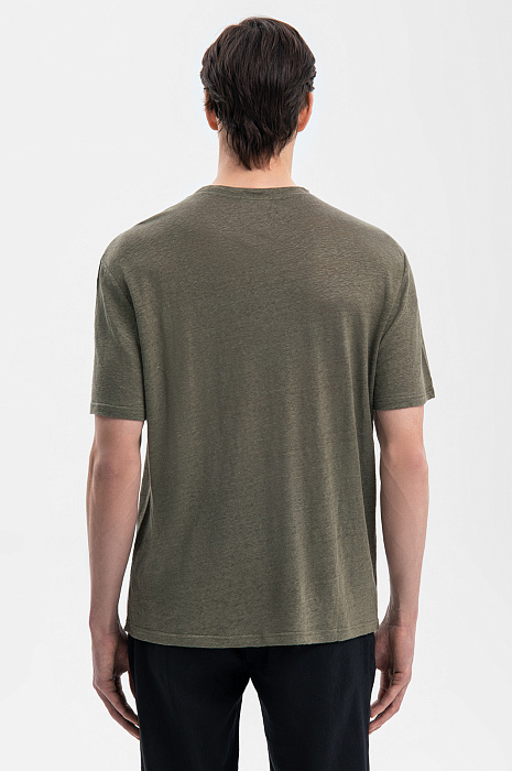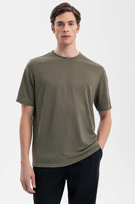 Футболка изо льна, цвет хаки, цена 5 990 руб., код 269252 - купить в Санкт-Петербурге в интернет-магазине KANZLER