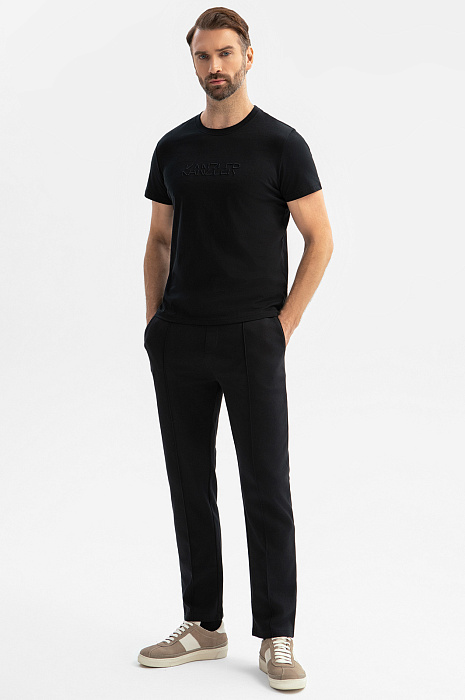 Черная футболка KANZLER из чистого хлопка с круглым вырезом — стильный элемент для создания современных образов в городском и спортивном стилях, который идеально сочетается с джинсами и джоггерами. Модель украшена фирменной вышивкой на груди. Слегка облегающий Приталенный крой подчеркнет подтянутую спортивную фигуру. Мягкий хлопковый трикотаж приятно носить в любую погоду. Он окутывает тело воздушной прослойкой и поддерживает оптимальную температуру. Натуральный состав ткани (100-процентный хлопок) подойдет для самой чувствительной кожи. Параметры модели: рост 189, 102-80-99 Размер на модели: M