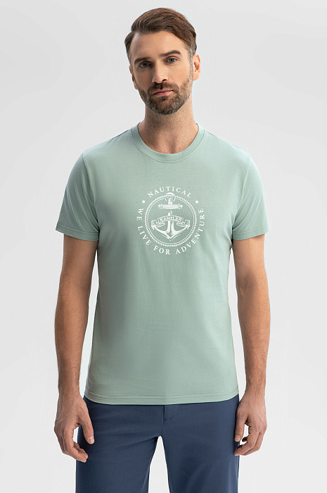 Зеленая хлопковая футболка Slim fit, цвет зеленый, цена 2 990 руб., код 269377 - купить в Санкт-Петербурге в интернет-магазине KANZLER