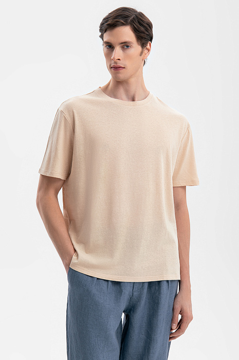 Футболка изо льна и хлопка, цвет бежевый, цена 5 990 руб., код 269379 - купить в Санкт-Петербурге в интернет-магазине KANZLER