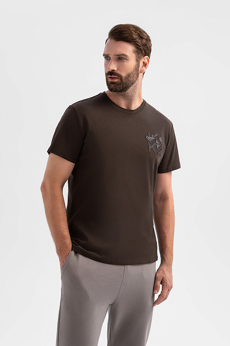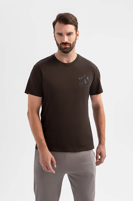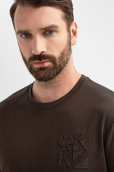 Футболка из хлопка, цвет коричневый, цена 3 990 руб., код 270211 - купить в Санкт-Петербурге в интернет-магазине KANZLER