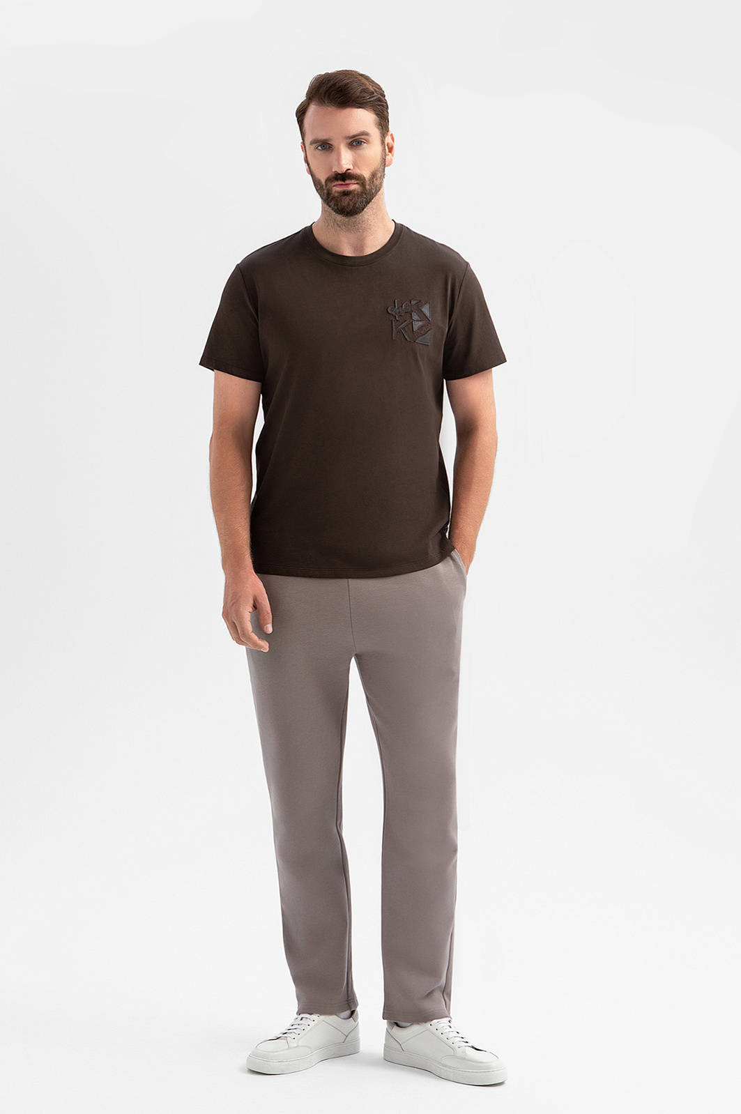 Футболка KANZLER шоколадного оттенка из чистого хлопка — стильная элегантная модель со спортивным характером, которая отлично сочетается с джинсами и джоггерами. Прилегающий силуэт подчёркивает линии тела, создавая современный динамичный образ. Оригинальная фирменная нашивка на груди служит акцентом, который превращает базовую футболку в стильную узнаваемую вещь. Эластичный трикотаж из чистого гипоаллергенного хлопка обеспечивает естественную мягкость, воздухопроницаемость и комфорт в течение дня. Параметры модели: рост 189, 102-80-99 Размер на модели: M