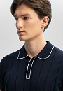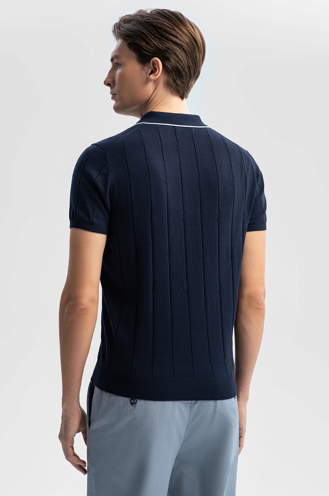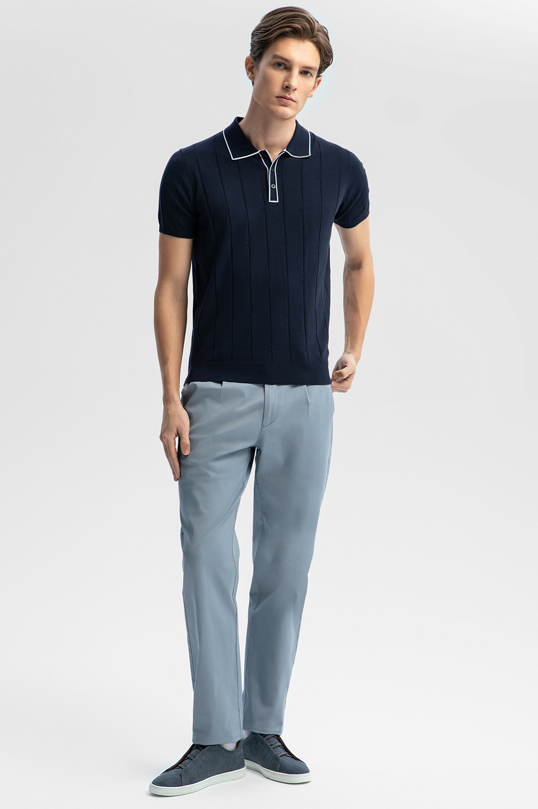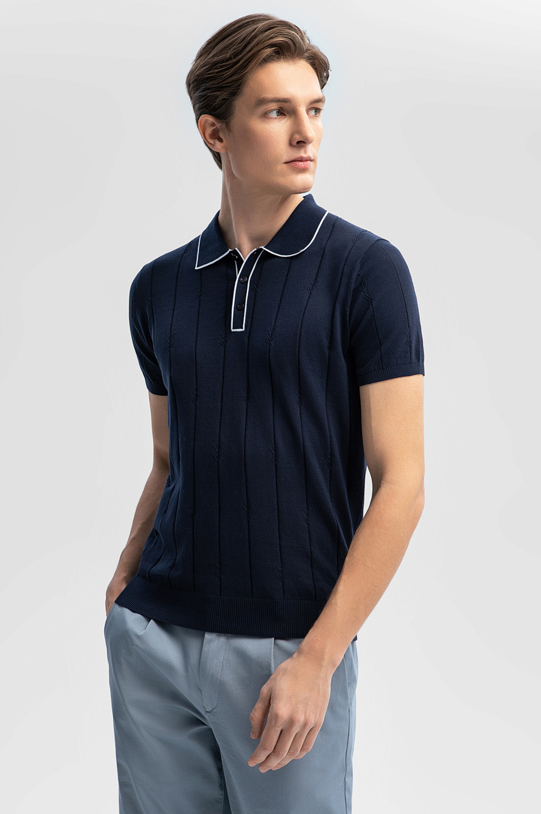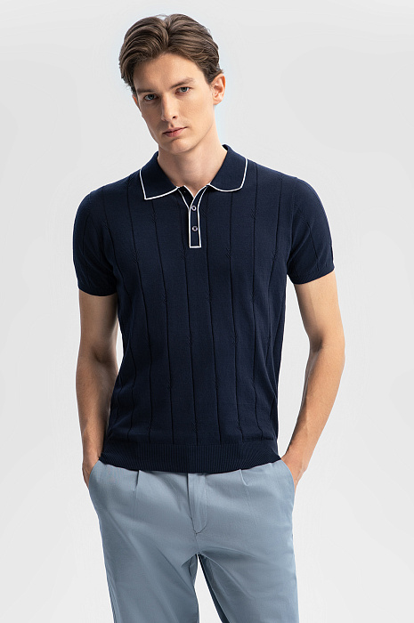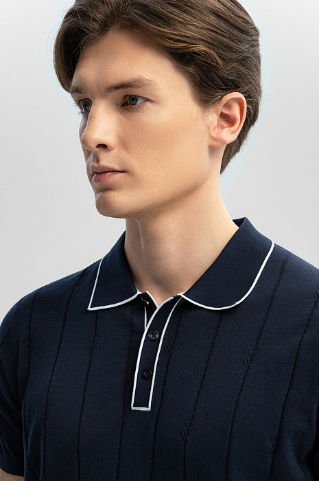 Элегантное тёмно-синее поло из 100% хлопка Пима станет отличным выбором для образа в стиле умный кежуал. Премиальный хлопок Пима известен своей мягкостью, прочностью и шелковистой фактурой. Материал устойчив к внешним воздействиям, сохраняет цвет и форму даже после многократных стирок. Глубокий тёмно-синий цвет с акцентной белой окантовкой на воротнике и планке позволяет легко встроить модель в повседневный и деловой гардероб. Приталенный крой и эластичные манжеты обеспечивают комфортную посадку, не стесняя движений. Параметры модели: рост 191, 97-77-99 Размер на модели: M