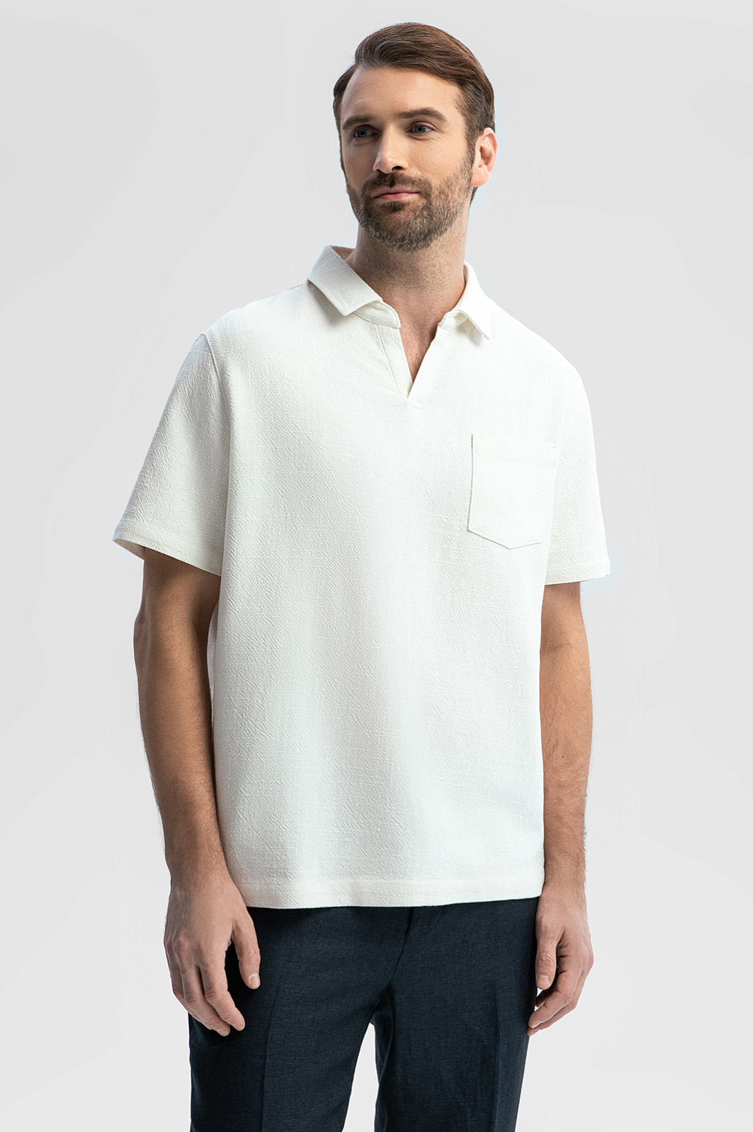 Поло оверсайз со льном, цвет молочный, цена 5 990 руб., код 269620 - купить в Санкт-Петербурге в интернет-магазине KANZLER
