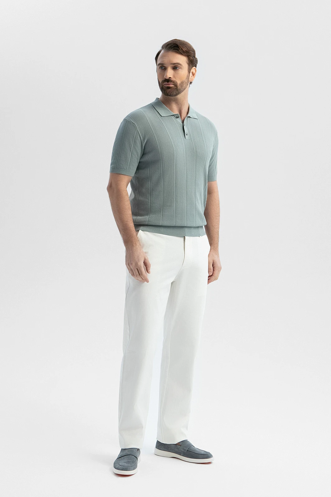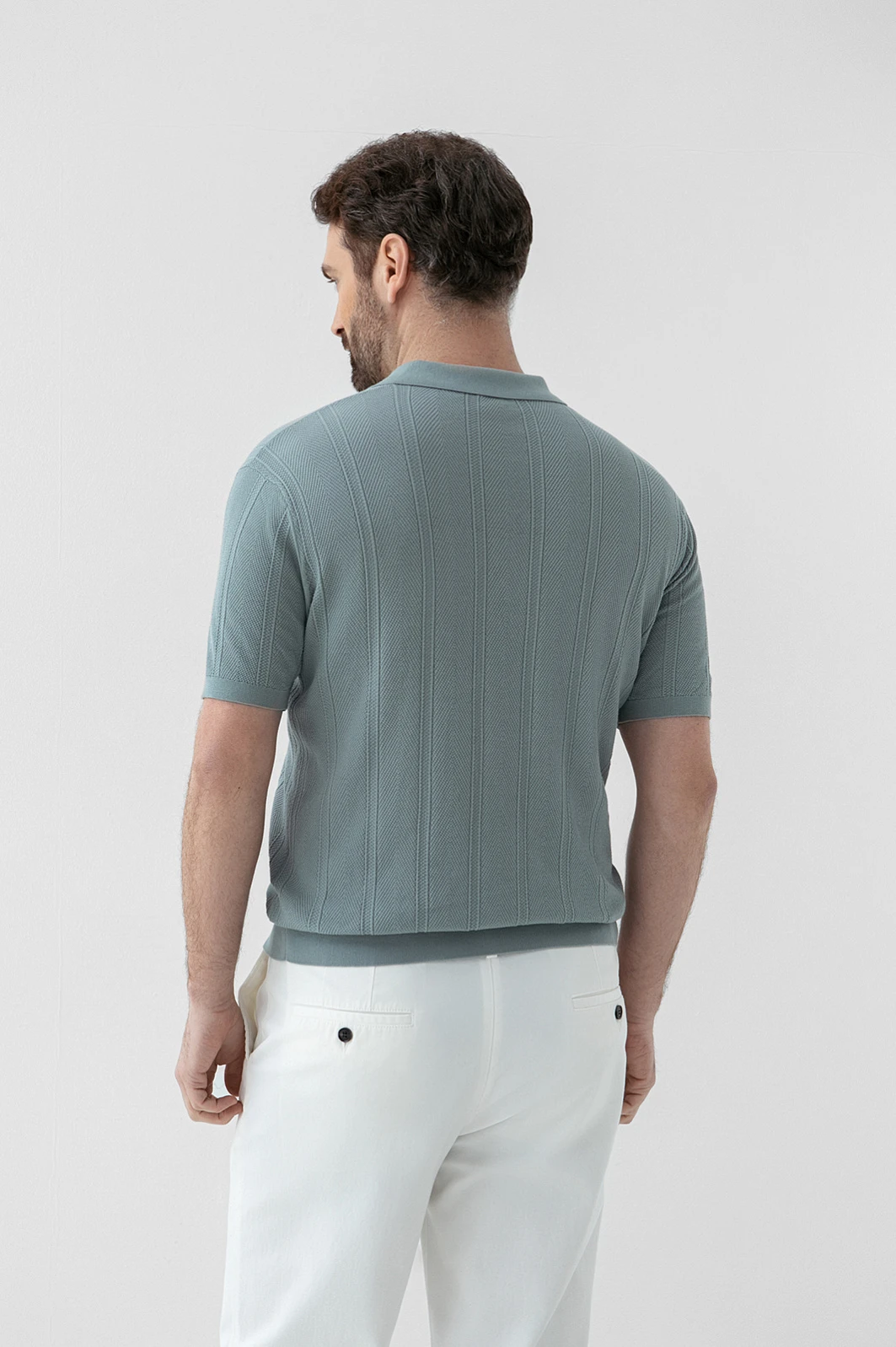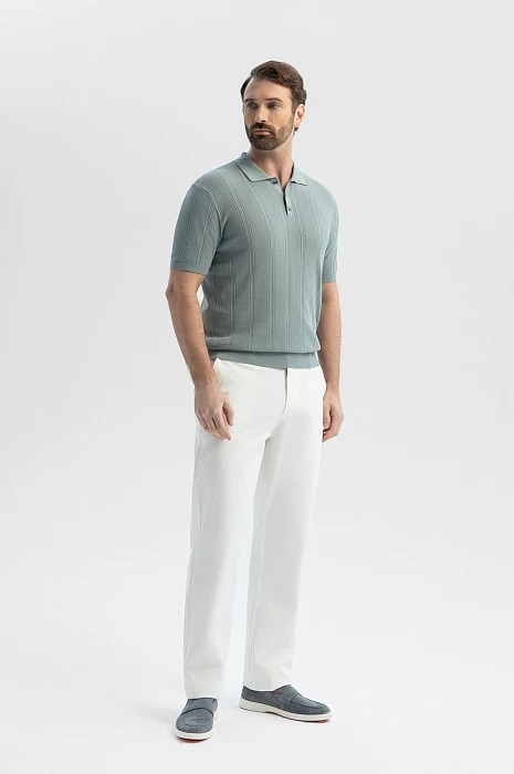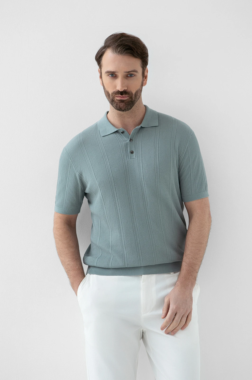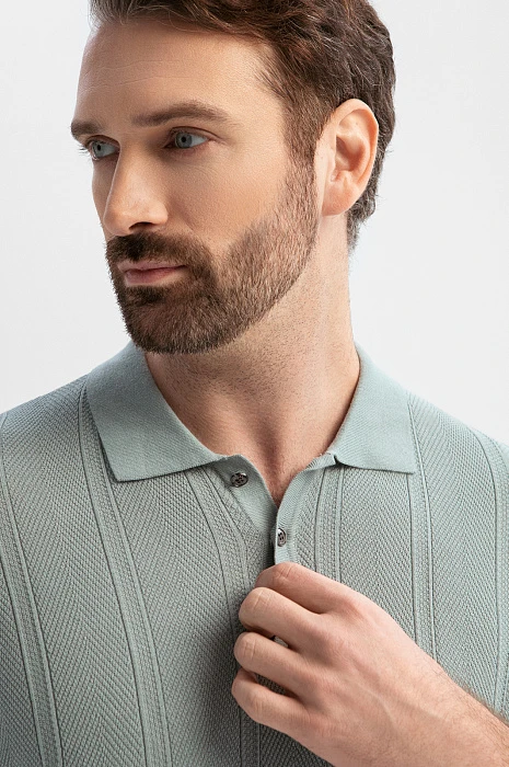 Поло KANZLER из хлопка Пима в сложном зелёно-голубом оттенке — свежая интерпретация классики с акцентом на фактуру и качество натуральной ткани. Модель органично впишется в летний гардероб, легко сочетаясь как с классическими брюками, так и с расслабленным денимом. Мягкий отложной воротник и застёжка на пуговицах добавляют образу сдержанной элегантности. Рельефный рисунок, заданный сочетанием диагонального рубчика и вертикальных полосок, создаёт выразительную игру фактур. Модель выполнена из премиального хлопка Пима: ультратонкие и длинные волокна придают полотну исключительную мягкость, нежность и шелковистость. Лёгкий, дышащий и приятный к телу материал обеспечивает комфорт и свежесть на протяжении всего дня.