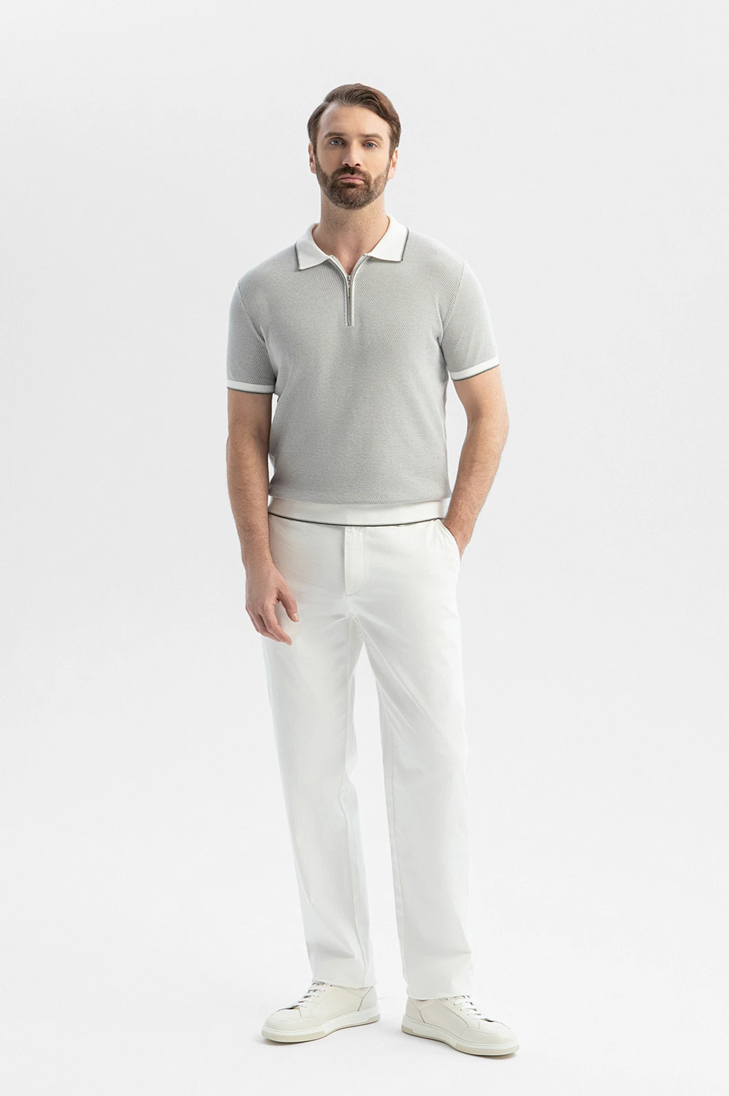 Поло KANZLER из хлопка с застёжкой-молнией — элегантная интерпретация спортивной классики в современном стиле. Лаконичный дизайн и освежающий зелёный оттенок делают модель универсальной основой повседневного гардероба: она гармонично сочетается с брюками, джинсами и шортами. Фактурный трикотаж придаёт поло выразительность и визуальную глубину, а белые детали с контрастным кантом — нарядность. Приятный к телу трикотаж сделан из чистого хлопка. Его лёгкие гипоаллергенные волокна поддерживают оптимальный микроклимат и сохраняют комфорт даже при длительном ношении. Эластичное полотно хорошо держит форму и адаптируется к индивидуальным особенностям фигуры.