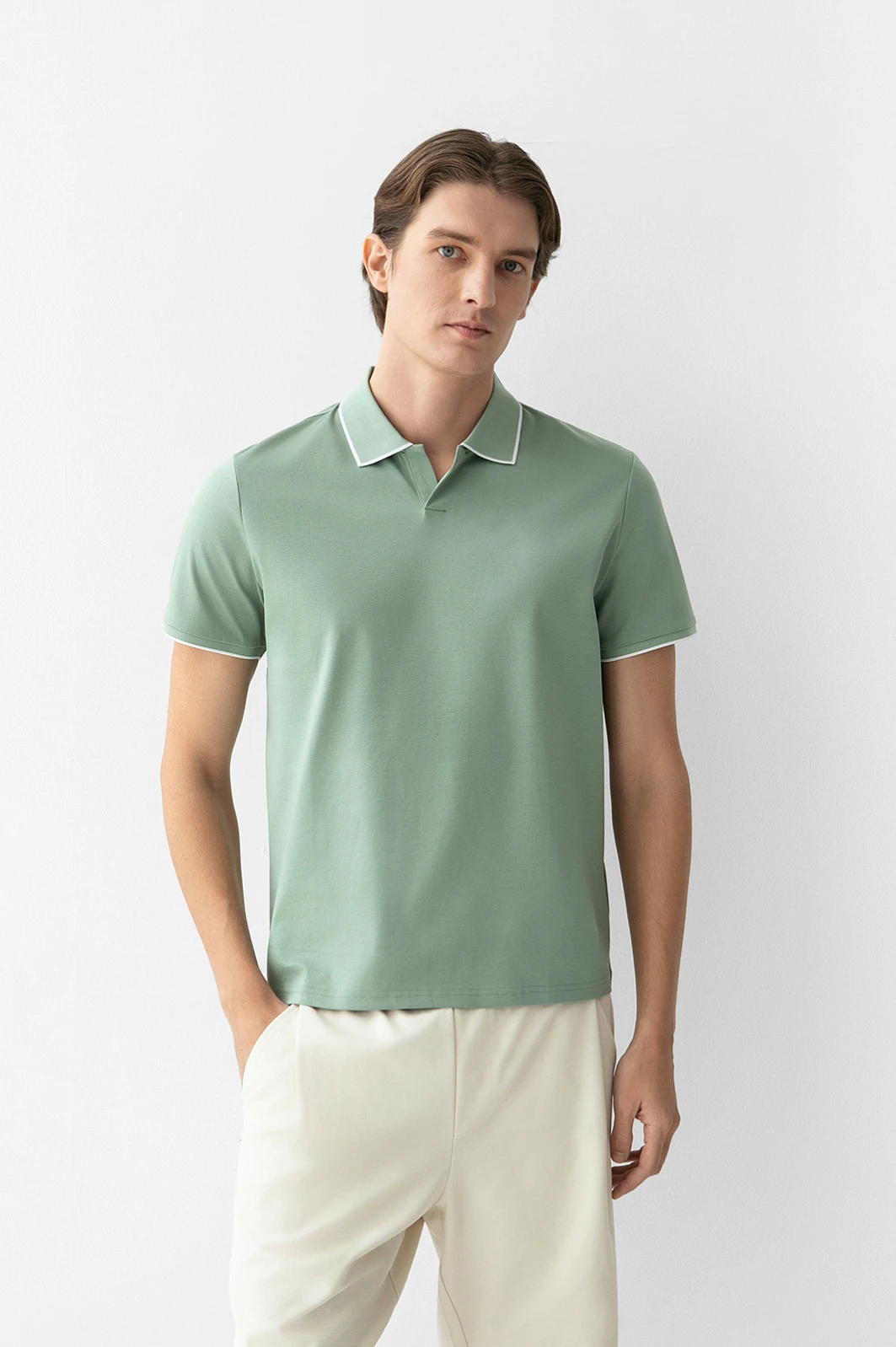 В тёплые дни поло KANZLER из мерсеризованного хлопка — достойная альтернатива рубашке с коротким рукавом. Светло-зелёную модель с белой окантовкой можно носить с классическими и неформальными брюками. Слегка приталенный силуэт формирует аккуратную посадку, сохраняя комфорт в движении. Трикотаж создан из мерсеризованного хлопка, который отличается мягким благородным блеском, повышенной прочностью и устойчивостью к сминанию — поло долго сохраняет безупречный внешний вид. Натуральные гипоаллергенные волокна поддерживают циркуляцию воздуха и оптимальную температуру, защищая от перегревания в жаркие дни.