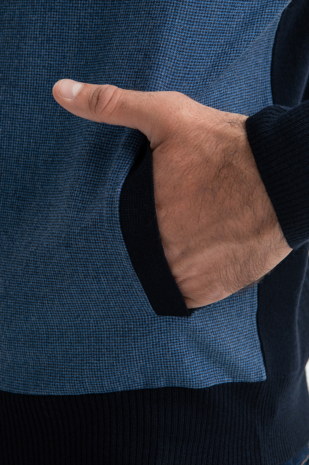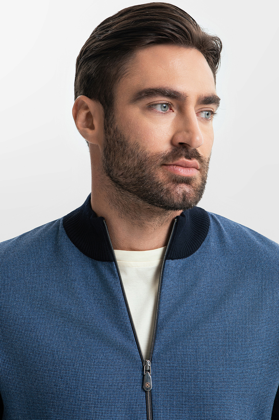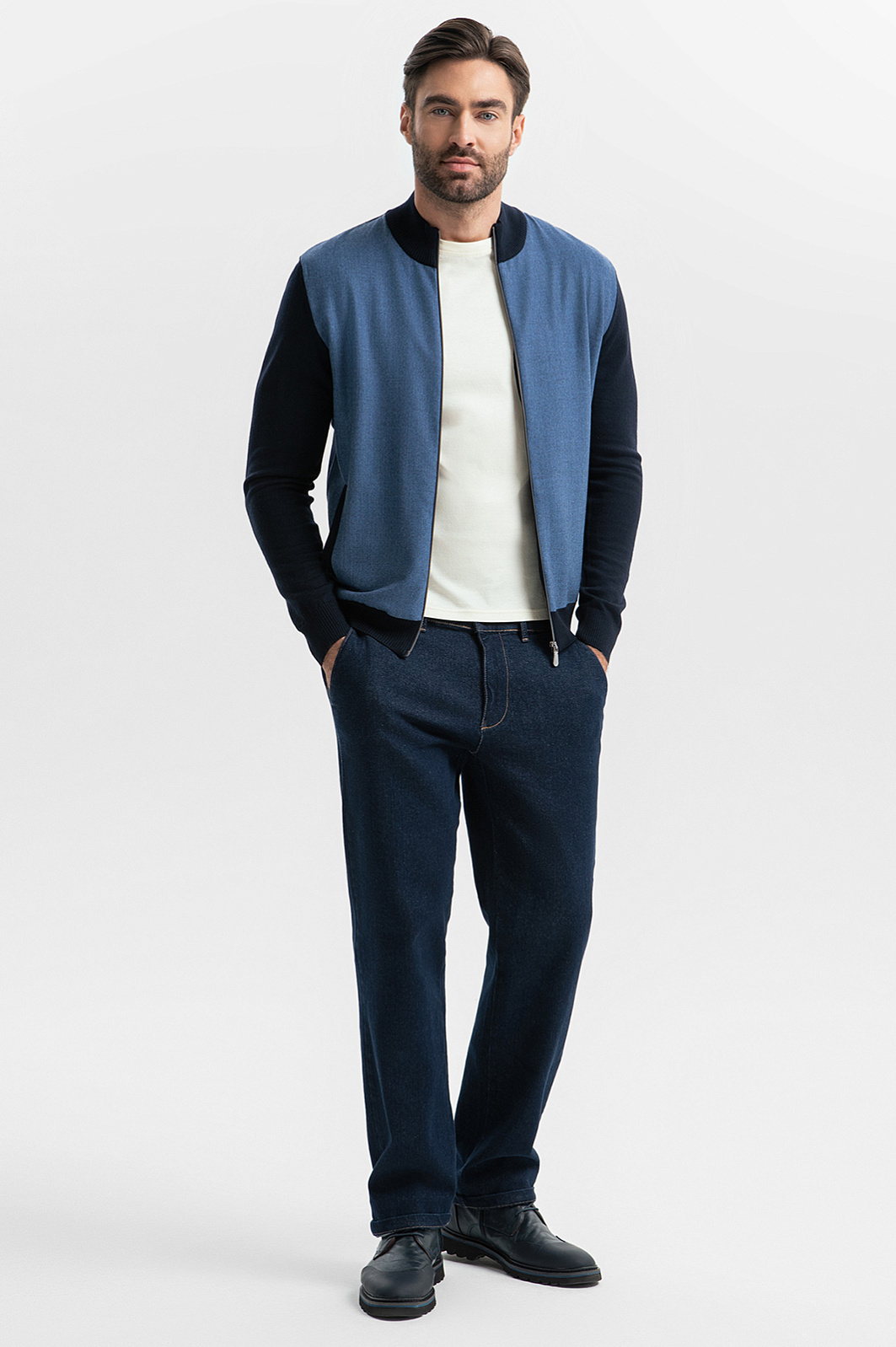 Кардиган на молнии из премиальной коллекции KANZLER — это идеальное решение для стильного многослойного образа. Его уникальный дизайн с отсылкой к трендовому фасону бомбера привлекает внимание сочетанием глубокого синего оттенка и насыщенного синего. Кардиган с круглым воротом выполнен из плотной, натуральной шерсти с приятной фактурой, которая обеспечивает тепло и комфорт. Модель с длинными рукавами и функциональными карманами с контрастной отделкой выглядит эффектно и практично. Рекомендуем сочетать изделие с однотонными брюками или джинсами и лаконичной футболкой для создания продуманного ансамбля. Такая комбинация подчеркнет оригинальный дизайн изделия. Параметры модели: рост 192, 108-83-102 Размер на модели: 50