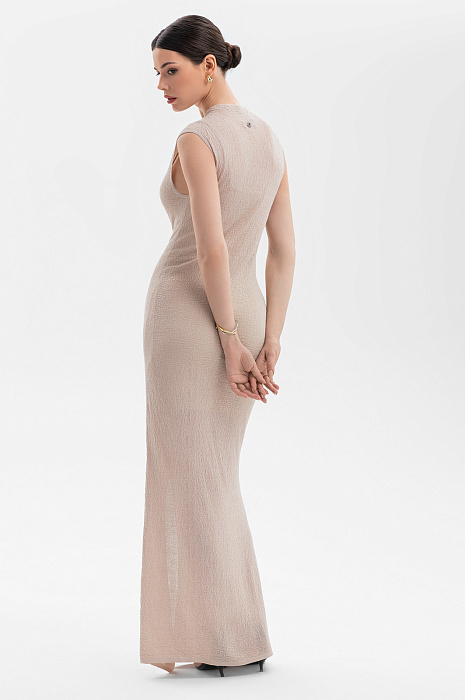 Эффектное длинное светло-бежевое платье-футляр KANZLER из фактурной ткани — настоящая ода женственности. Надевая его по особому случаю, будьте готовы к комплиментам и восхищенным взглядам. Платье изящно облегает фигуру, следуя волнующим изгибам. Искусно расставленные акценты — разрез до колена, открытые руки — делают образ притягательным и неотразимым. Модель сшита из тактильно приятного прочного смесового материала (вискоза с полиамидом) и украшена небольшой фирменной эмблемой сзади. Нижнее платье сделано из приятного для тела гладкого шелковистого модала. Оно служит для комфорта и в качестве дополнительного слоя, чтобы основная ткань не просвечивала.