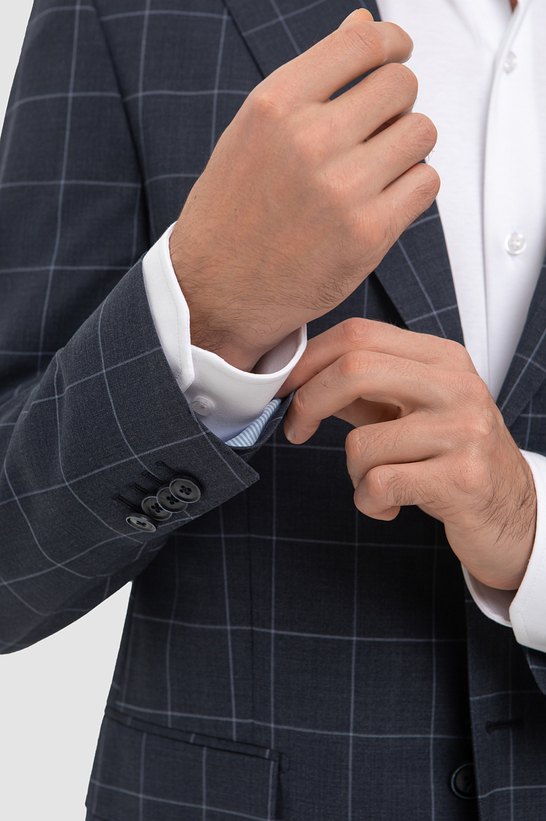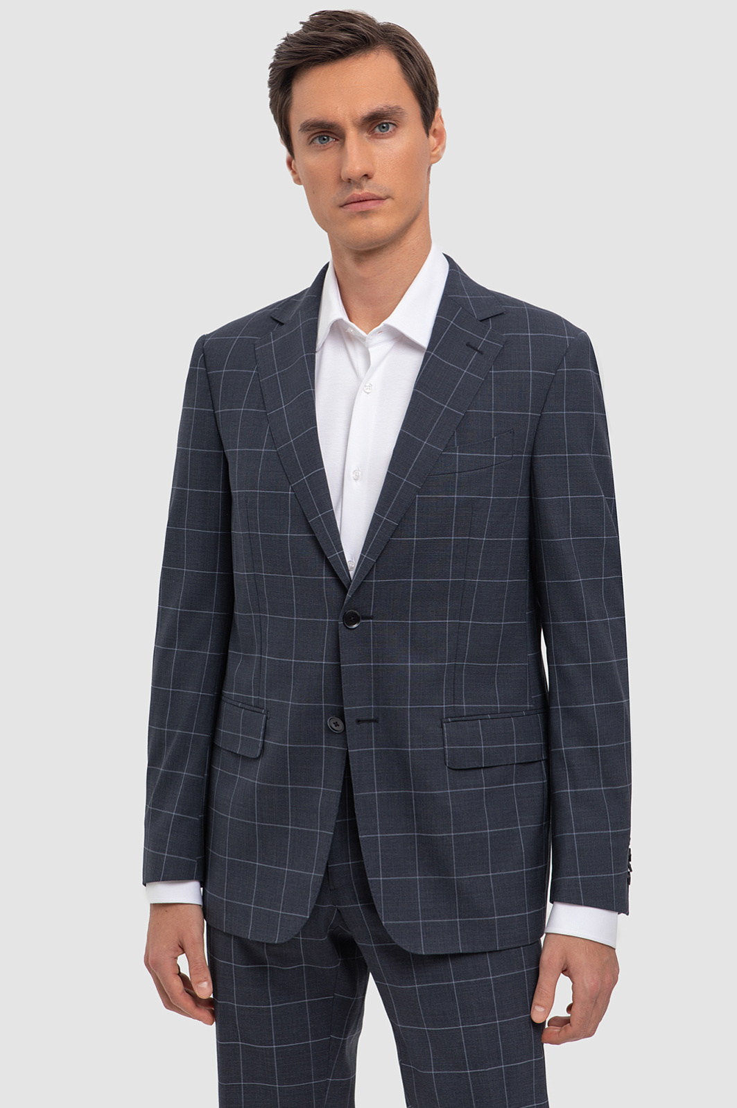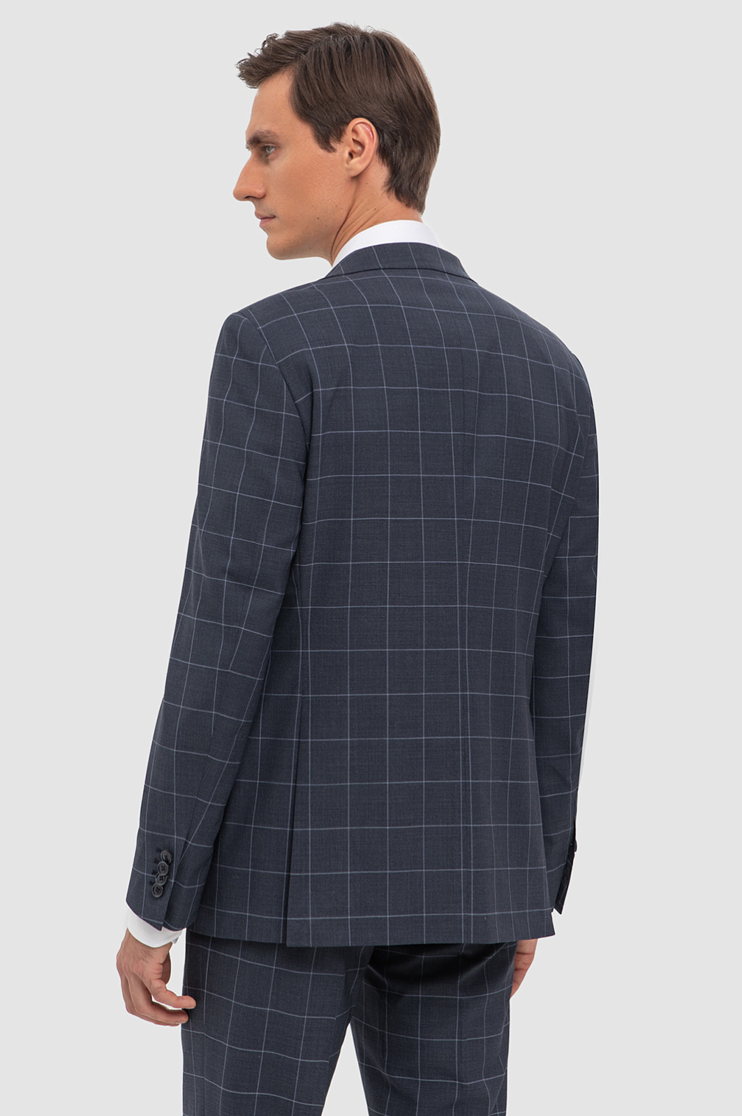 Элегантный костюм KANZLER серого оттенка в тонкую широкую клетку — образец тихой роскоши. Дорогая премиальная ткань создана из тонкой чистой шерсти мериноса Супер 120S. Ее отличают благородный вид и уникальные свойства — способность сохранять комфортную температуру, гигроскопичность и устойчивость к сминанию. Пиджак традиционного кроя с двумя шлицами сзади имеет внешние и внутренние карманы — для пластиковых карт и полезных мелочей. Подкладка выполнена из гладких и износоустойчивых современных материалов. Костюм имеет все шансы стать вашим фаворитом. Он будет великолепно смотреться в офисе и на деловых встречах "без галстука".