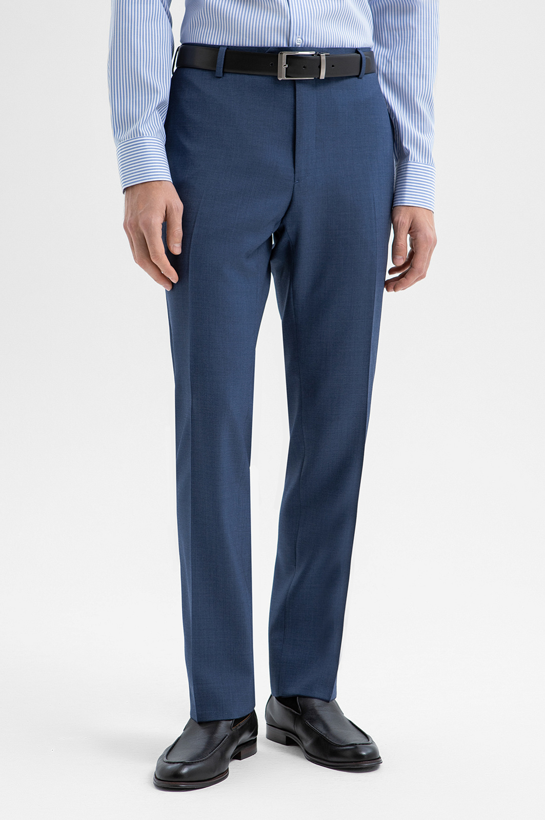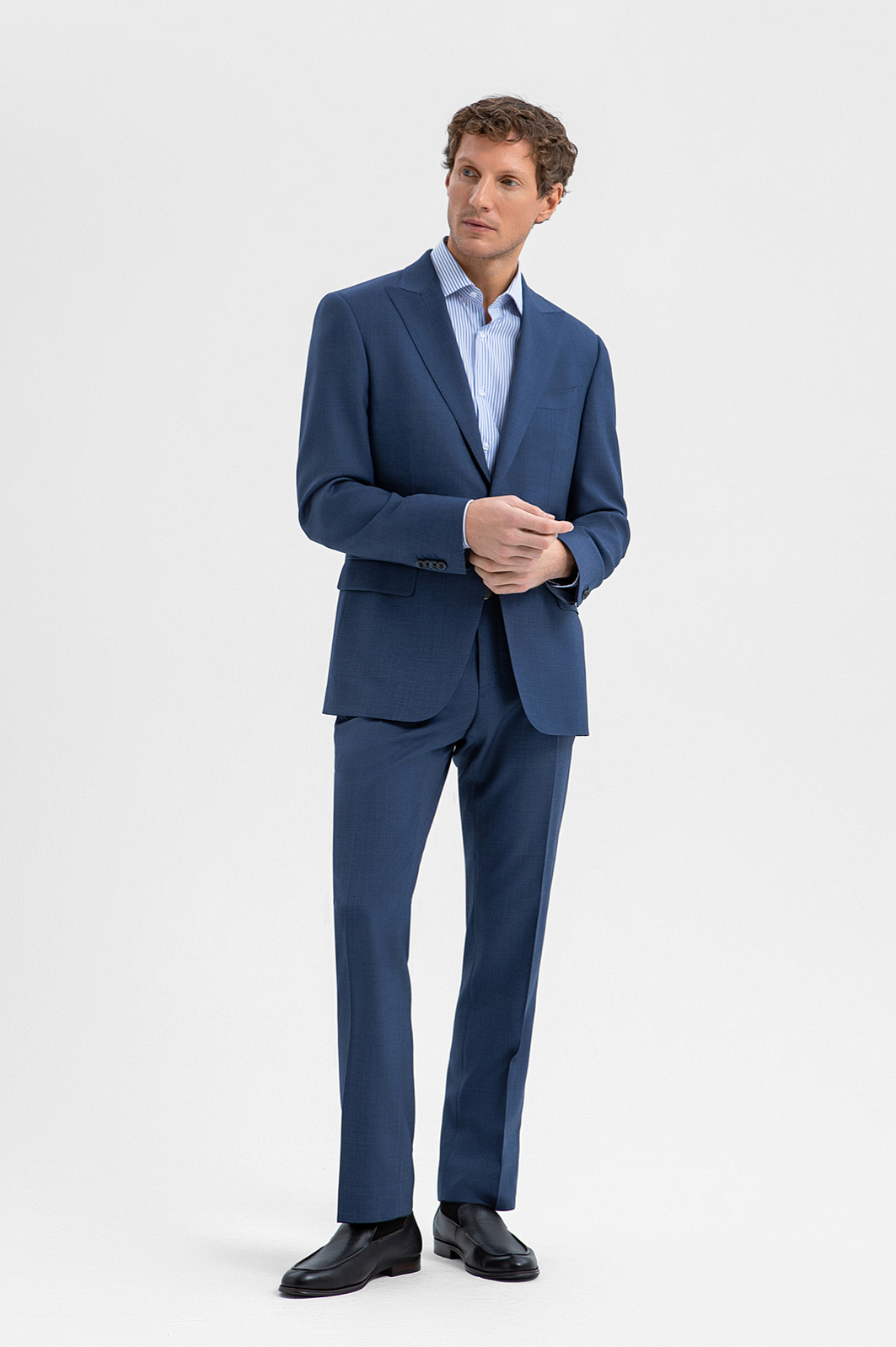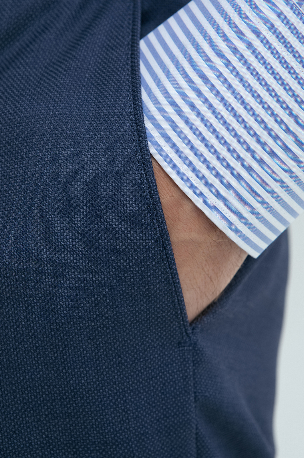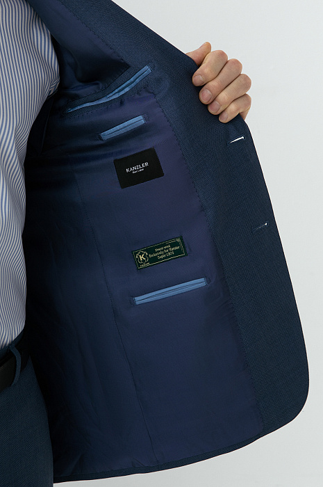 Роскошный синий костюм KANZLER из шерсти мериноса подходит для официальных мероприятий, переговоров и светских вечеров. Мягкое плечо делает посадку пиджака непринуждённой и естественной. Слегка заострённый лацкан и нагрудный карман с листочкой подчёркивают изысканность кроя. Строгие стрелки на брюках вытягивают силуэт и придают фигуре стройность. Водоотталкивающая обработка помогает костюму оставаться безупречным в условиях переменчивой погоды. Дорогая ткань из шерсти мериноса бережно сохраняет естественное тепло, создавая идеальный микроклимат.
