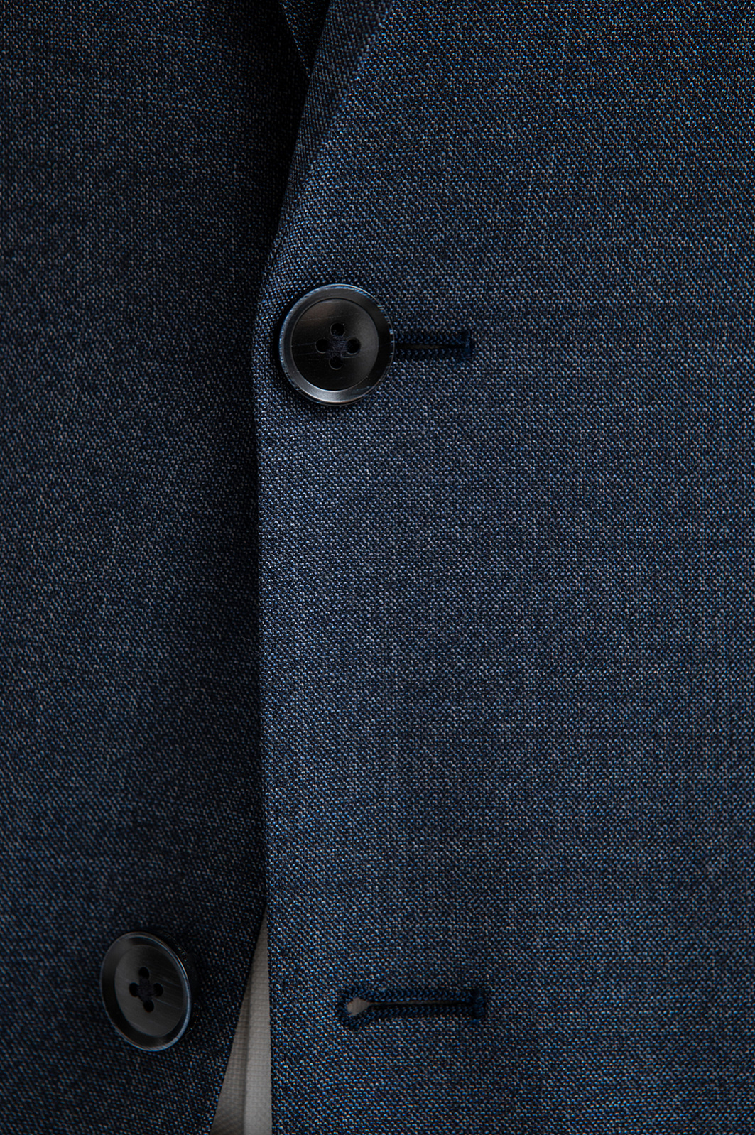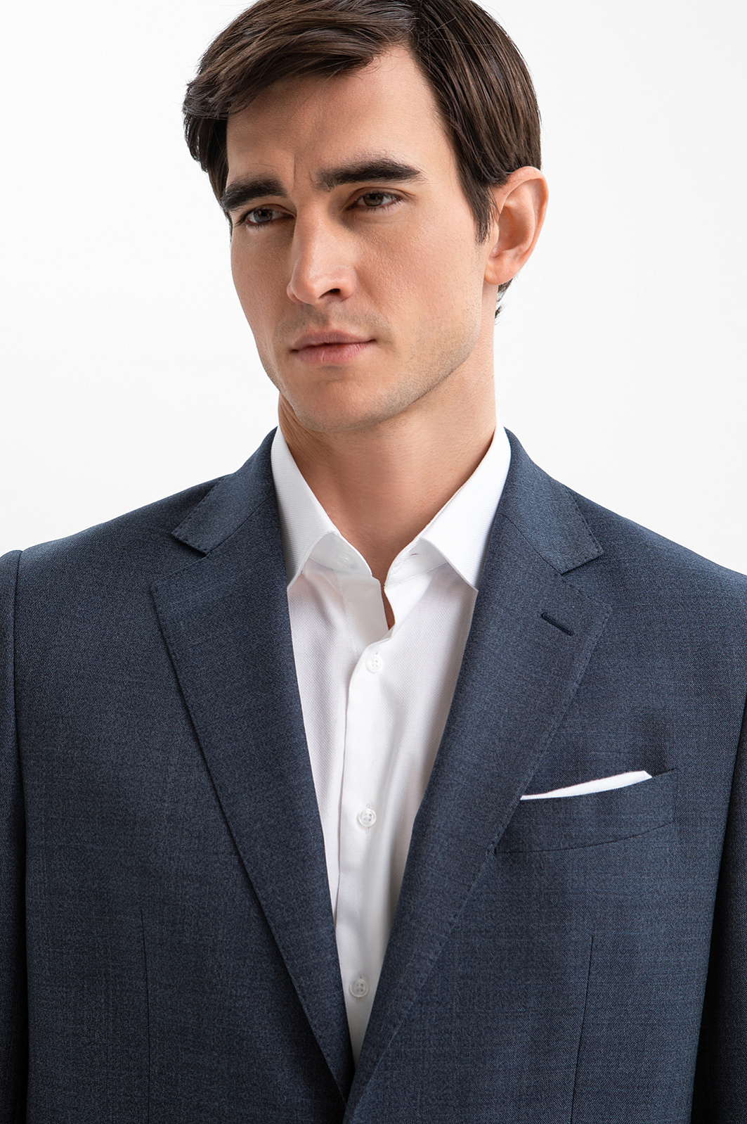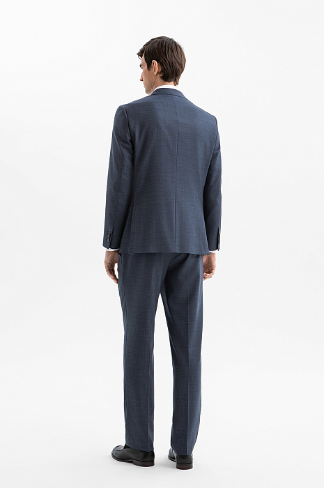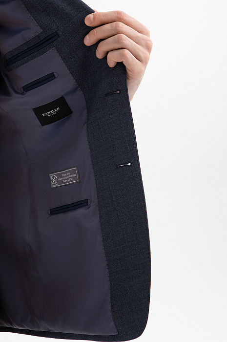 Классический костюм KANZLER из дорогой костюмной шерсти Супер 120S с водоотталкивающей обработкой глубокого синего цвета — роскошная, не слишком строгая и очень комфортная одежда для деловых и светских выходов. Универсальный прямой крой с накладными карманами формирует лаконичный силуэт пиджака. Слегка зауженные брюки со стрелками задают вертикальные линии, вытягивая силуэт. Водоотталкивающая обработка ткани помогает сохранить аккуратный вид костюма в условиях непредсказуемой погоды. Благородная шерсть красиво драпируется при движении. Её тонкие упругие волокна берегут естественное тепло и поддерживают оптимальную для тела температуру.