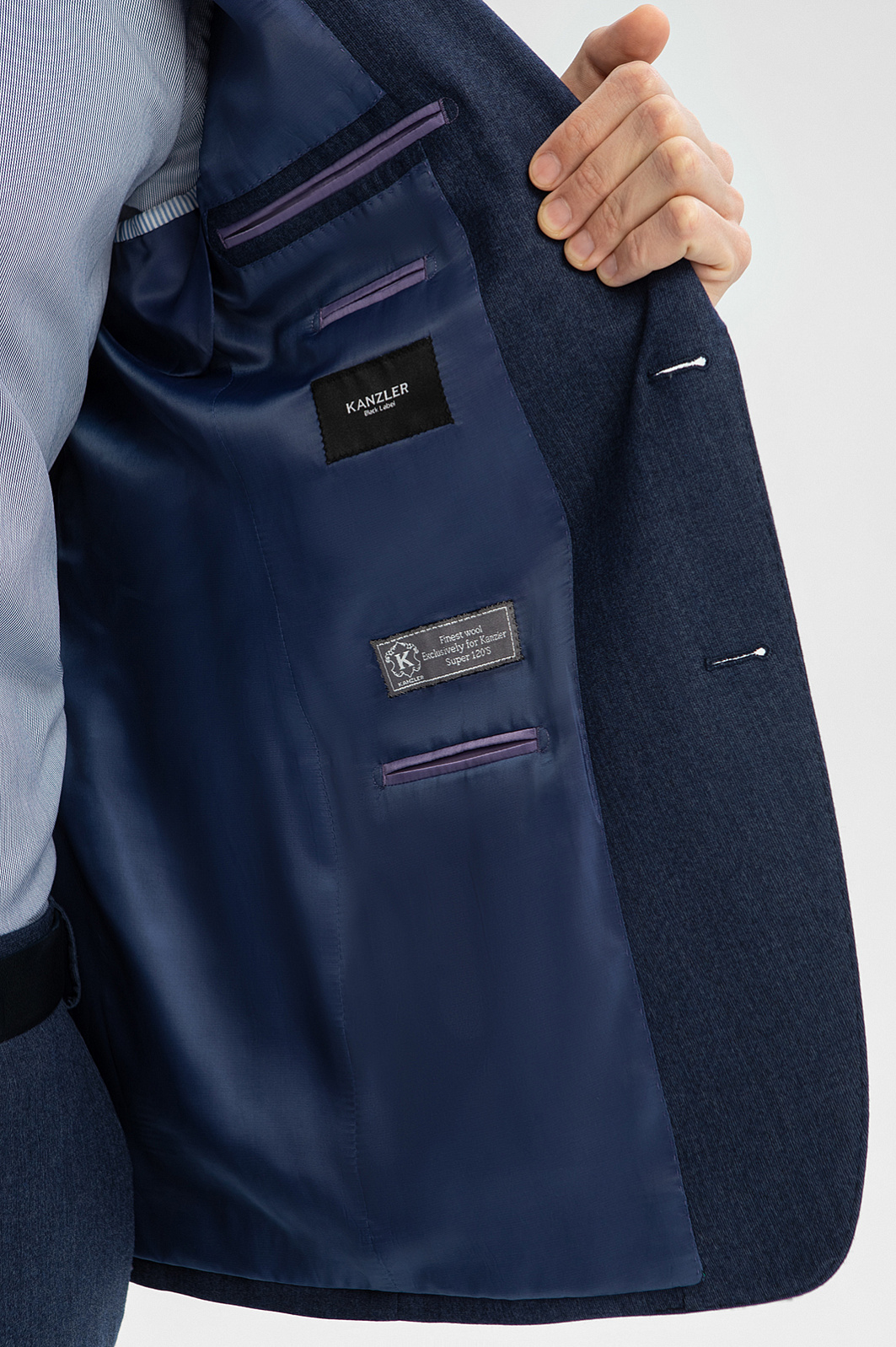 Костюм из шерсти, устойчивой к сминанию, цвет синий, цена 39 980 руб., код - купить в Санкт-Петербурге в интернет-магазине KANZLER