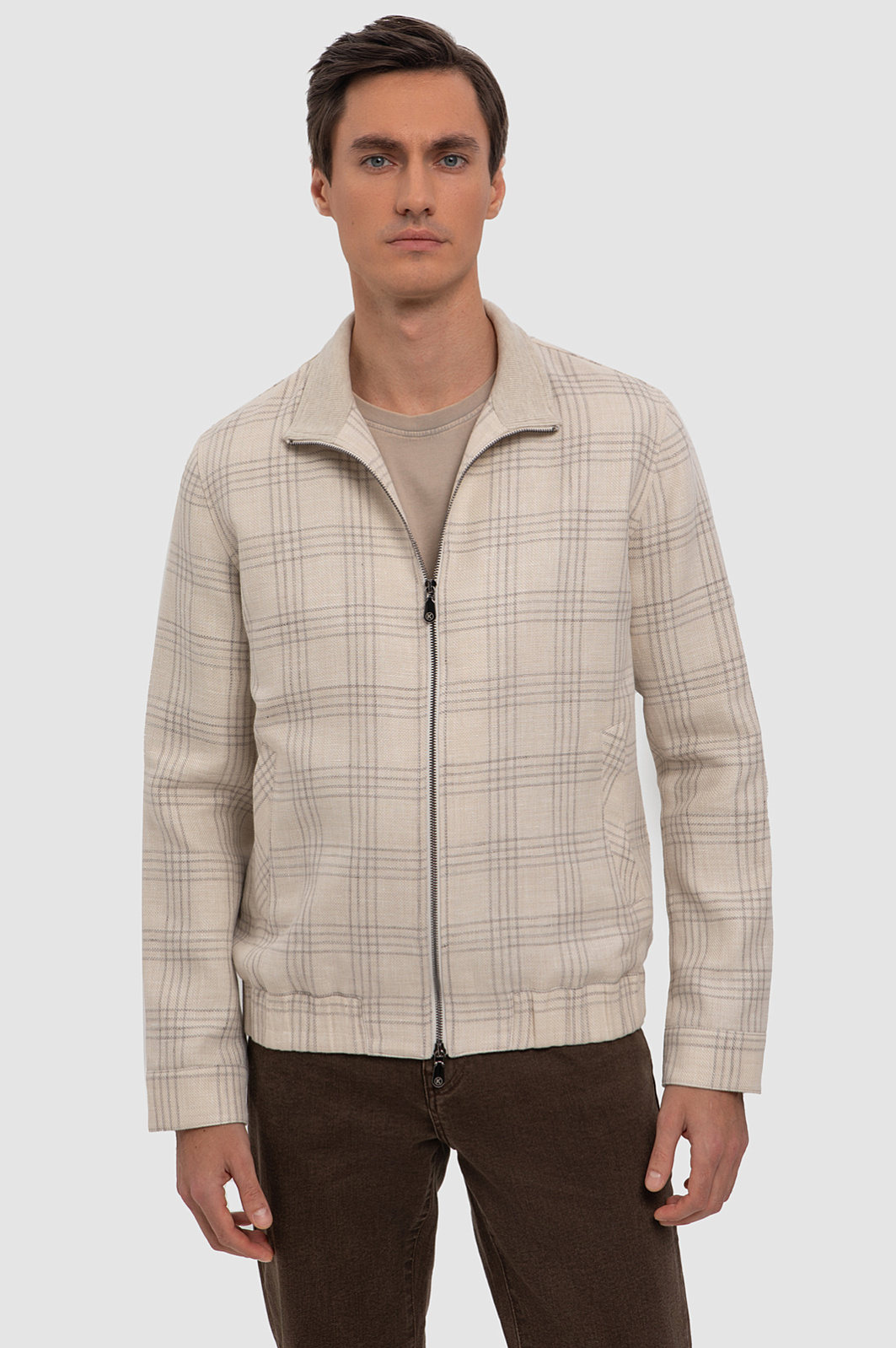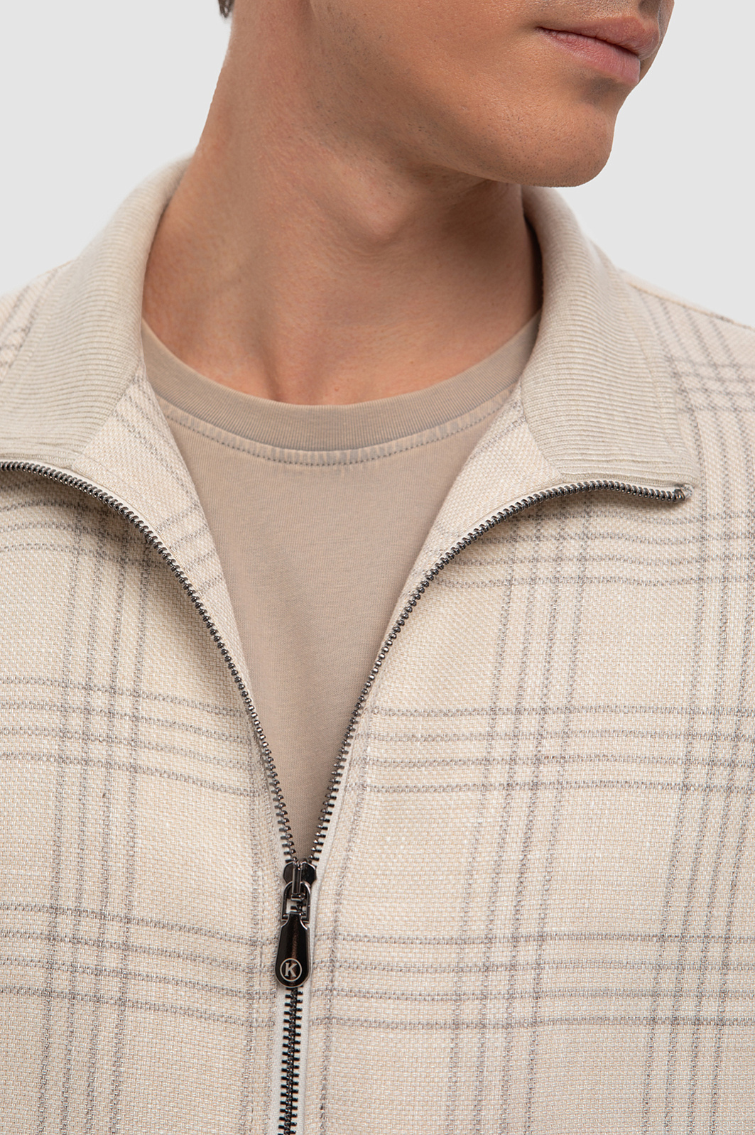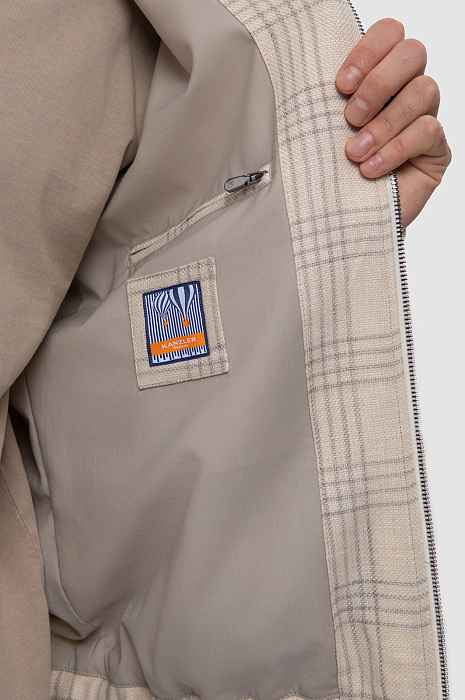 Элегантная светло-бежевая куртка KANZLER в широкую серую клетку изо льна и шерсти — украшение лимитированная коллекции, которая отшивается исключительно из дорогих премиальных материалов базовых нейтральных оттенков. Модель является интерпретацией классического бомбера: сохранив спортивные динамичные черты, дизайнеры добавили элегантности и урбанистического шика. Красивая функциональная вещь подходит для прогулок по городу и отдыха на природе. Двухзамковая молния позволяет расстегивать куртку сверху и снизу, что особенно удобно при передвижении на автомобиле. Широкий внутренний карман на молнии предназначен для документов и важных мелочей. Благодаря высокому содержанию льна (60%), ткань отлично пропускает воздух и обеспечивает оптимальную для тела температуру. Тонкая шерсть (40%) придает материалу мягкость и упругость. Бомбер выглядит дорого, не мнется и хорошо держит форму. Параметры модели: рост 184, 98-74-92 Размер на модели: 50