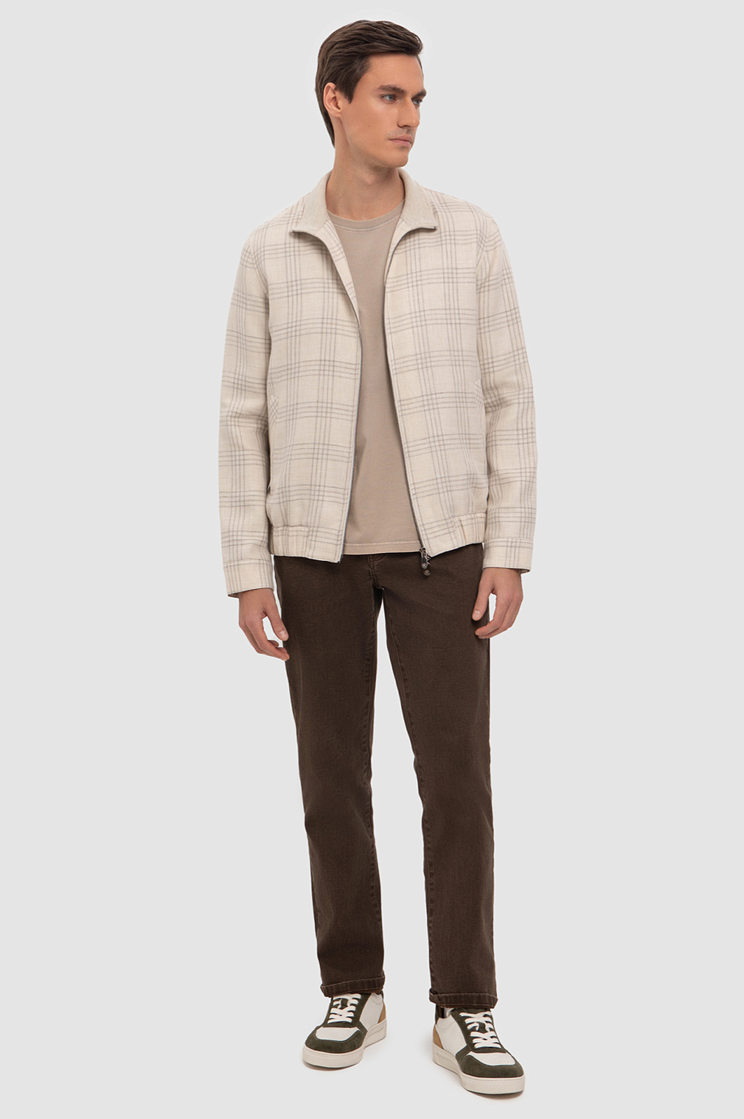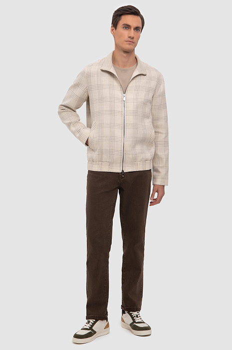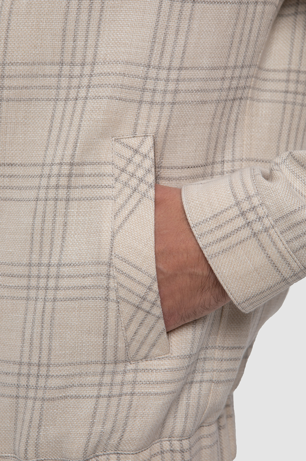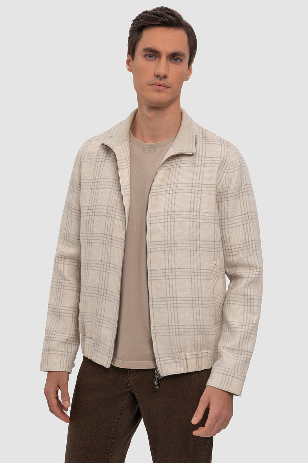 Элегантная светло-бежевая куртка KANZLER в широкую серую клетку изо льна и шерсти — украшение лимитированная коллекции, которая отшивается исключительно из дорогих премиальных материалов базовых нейтральных оттенков. Модель является интерпретацией классического бомбера: сохранив спортивные динамичные черты, дизайнеры добавили элегантности и урбанистического шика. Красивая функциональная вещь подходит для прогулок по городу и отдыха на природе. Двухзамковая молния позволяет расстегивать куртку сверху и снизу, что особенно удобно при передвижении на автомобиле. Широкий внутренний карман на молнии предназначен для документов и важных мелочей. Благодаря высокому содержанию льна (60%), ткань отлично пропускает воздух и обеспечивает оптимальную для тела температуру. Тонкая шерсть (40%) придает материалу мягкость и упругость. Бомбер выглядит дорого, не мнется и хорошо держит форму. Параметры модели: рост 184, 98-74-92 Размер на модели: 50