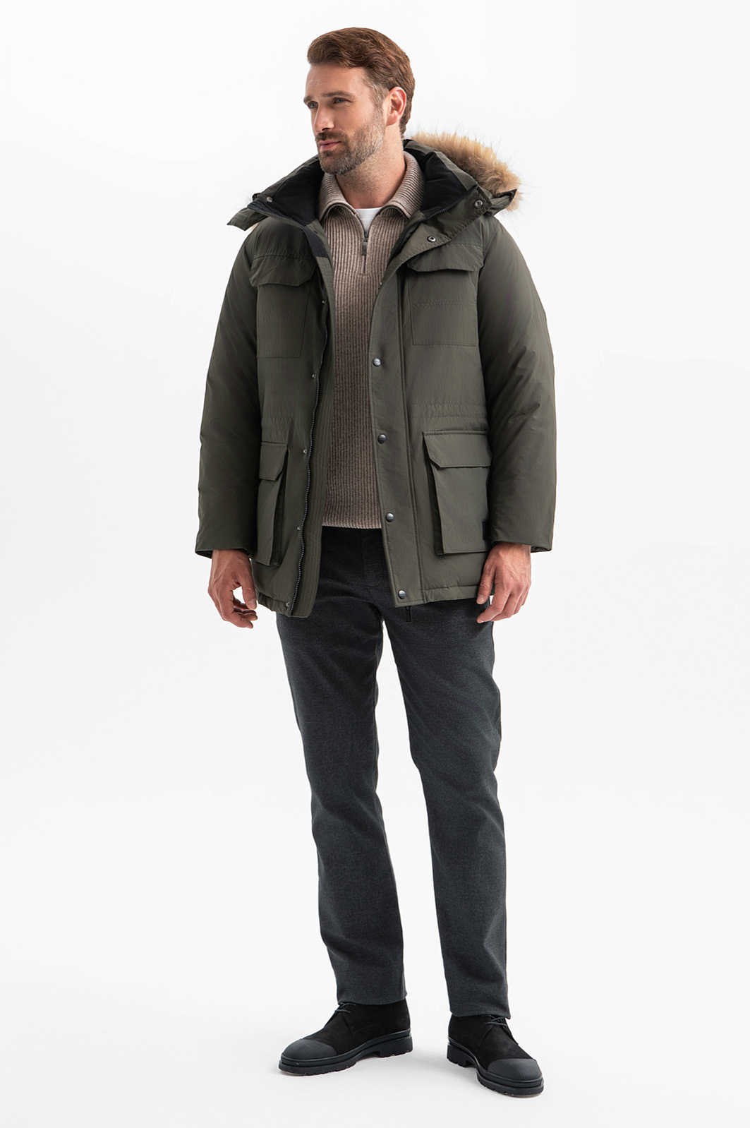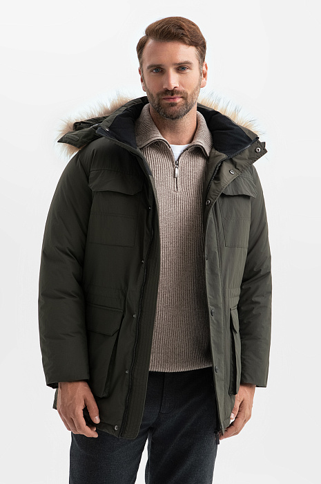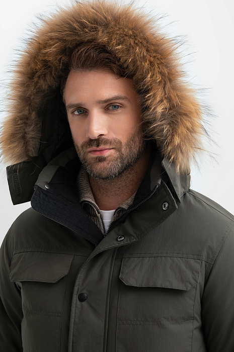 Куртка с натуральным мехом и водоотталкивающей обработкой, цвет хаки, цена 16 990 руб., код 268234 - купить в Санкт-Петербурге в интернет-магазине KANZLER