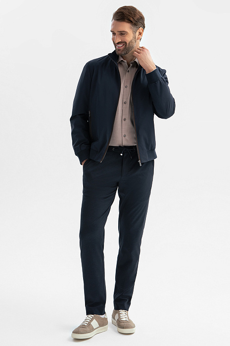 Стильный бомбер KANZLER изысканного темно-синего цвета — находка для мужчин, которые ценят премиальное качество, функциональность и безупречный образ в любую погоду. Технологичный материал, состоящий из 90% полиамида и 10% спандекса, обладает особой прочностью и эластичностью. Водоотталкивающая обработка позволит не беспокоиться о внезапных переменах погоды. Воротник-стойка не только выглядит стильно, но и защищает шею от ветра без необходимости надевать шарф. Эластичные резинки на манжетах и вдоль низа изделия сохраняют тепло. Для хранения важных мелочей предусмотрен внутренний карман на молнии. Благодаря сочетанию классических элементов и современных тенденций бомбер гармонично дополнит образы в разных стилях, добавляя нотку непосредственности и изысканности. Параметры модели: рост 189, 102-80-99 Размер на модели: 50