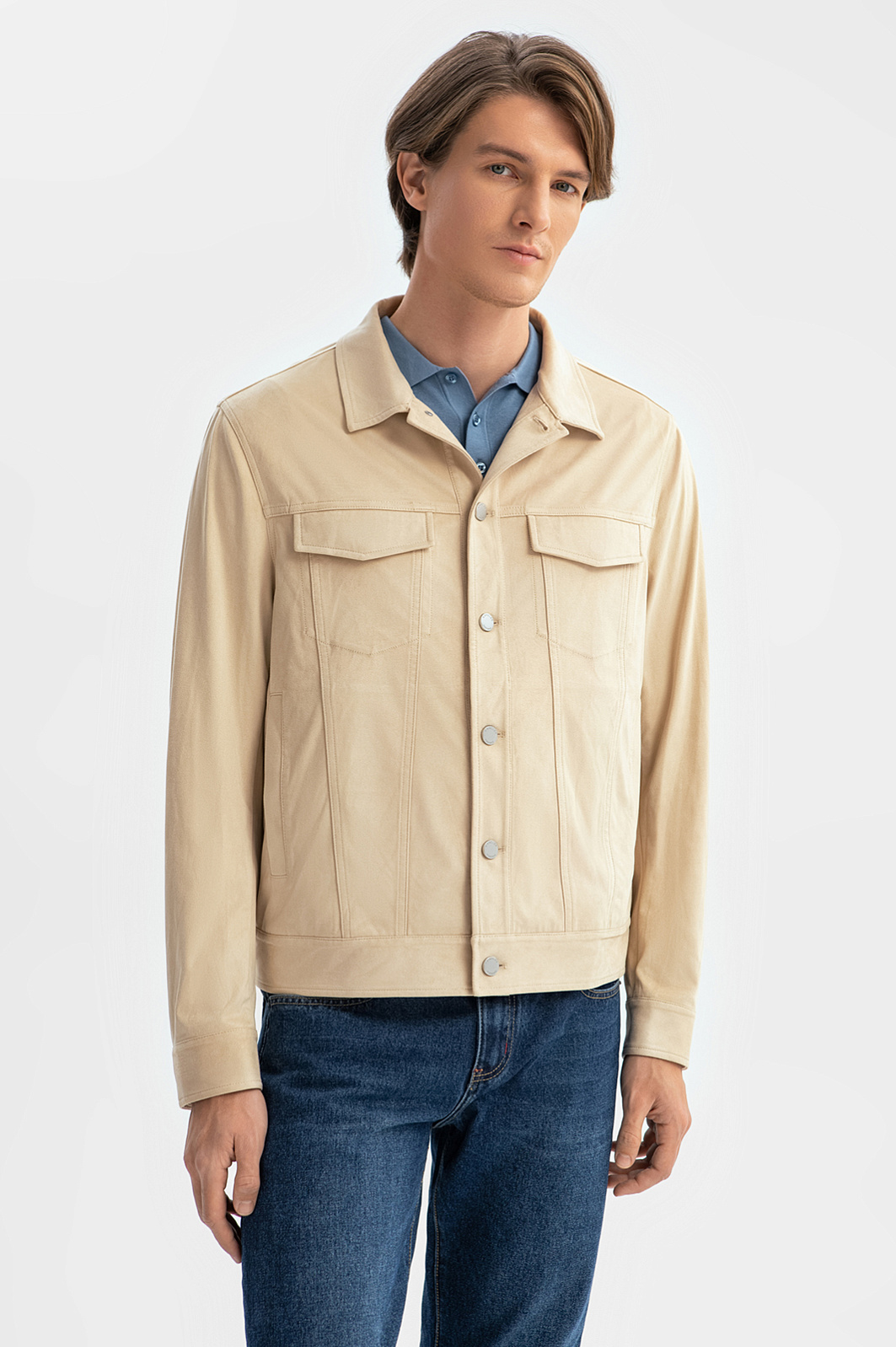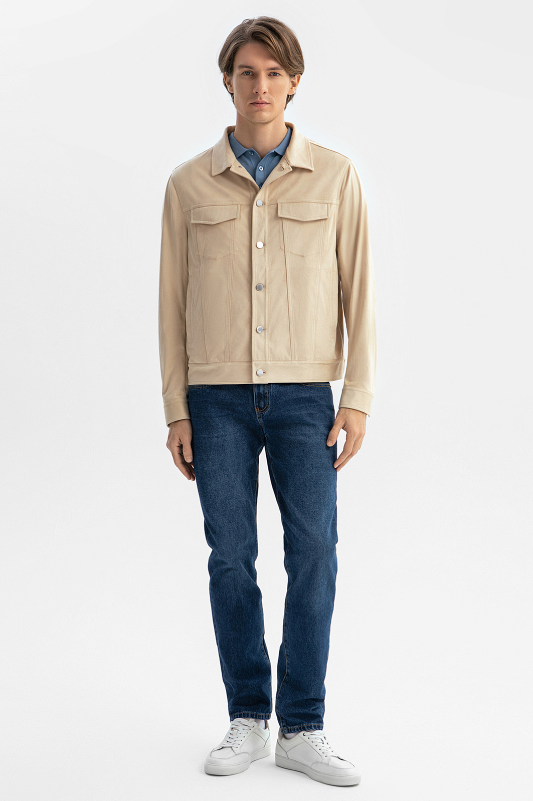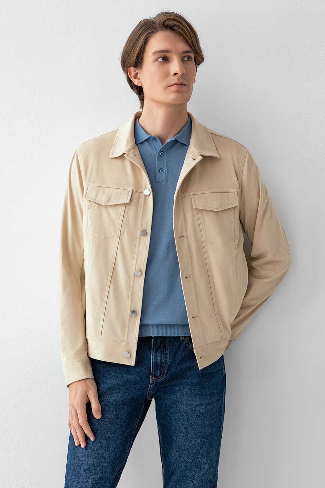 Куртка из алькантары бежевого цвета, цвет бежевый, цена 9 990 руб., код 269000 - купить в Санкт-Петербурге в интернет-магазине KANZLER