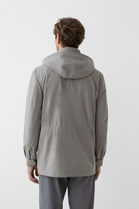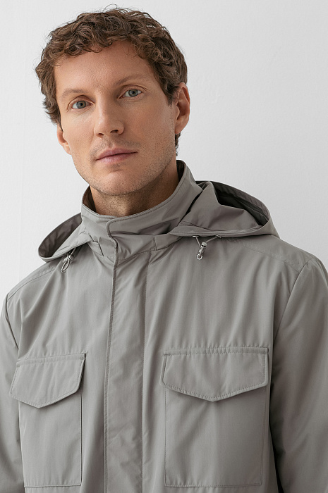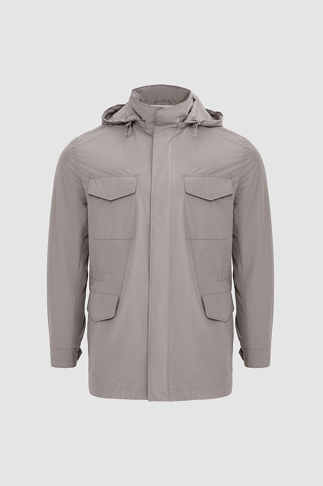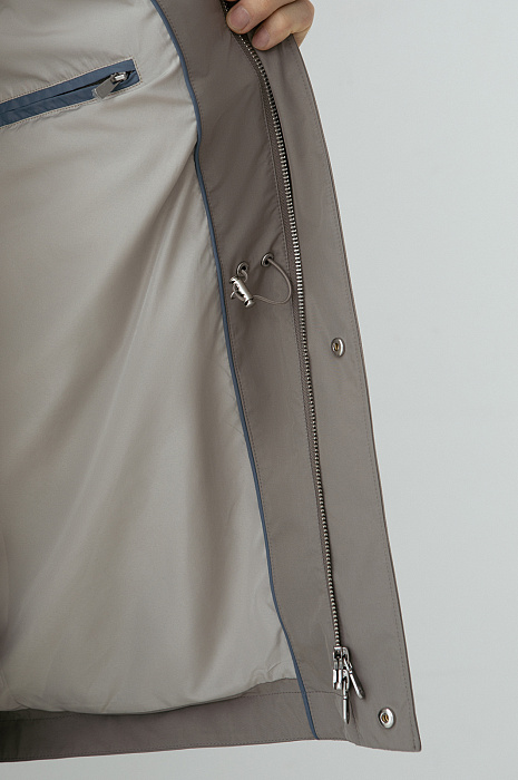 Лёгкая куртка KANZLER с капюшоном серо-бежевого оттенка сочетает сдержанную эстетику современного городского casual с продуманной функциональностью и чистотой линий. Нейтральный оттенок выглядит благородно и легко интегрируется в базовый гардероб, оставаясь вне трендов. Умеренно свободный крой не сковывает движения и позволяет комфортно носить куртку поверх многослойных образов. Потайной шнурок с фиксатором помогает точно отрегулировать посадку, сохраняя аккуратный силуэт. Современная ткань из прочного полиэстера с водоотталкивающей обработкой надёжно защищает от дождя и ветра.