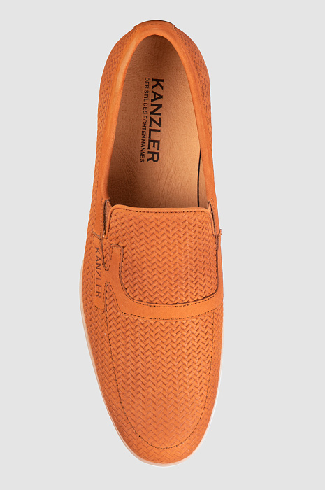 Создавая стильные лоферы KANZLER модного апельсинового оттенка из мягкой натуральной кожи, дизайнеры вдохновились Амальфинатским побережьем — яркими красками рыбацких поселков, захватывающими дух видами и роскошным стилем местных жителей. Рельеф кожаного верха создает эффект плетеной обуви. Знаковая форма лоферов украшена стилизованным фирменным инициалом, пристроченным к союзке. Кожаная стелька и подкладка служат комфорту, а светлая подошва из резины придает паре гибкость и устойчивость при ходьбе. Обувь оценят поклонники активного и в то же время изысканного отдыха.