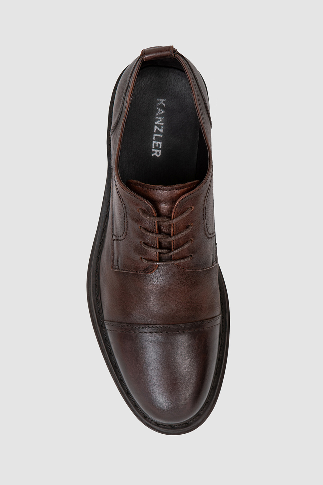 Коричневые кожаные полуботинки KANZLER с отрезным мыском — универсальная обувь в стиле кежуал, которая идеально сочетается с нестрогими костюмами, твидовыми пиджаками и неформальными брюками. Аккуратные швы, элегантная форма и благородный натуральный материал придают образу завершённость и делают пару идеальным выбором для городских прогулок и встреч. Верх, подкладка и стелька выполнены из гладкой кожи — натурального дышащего материала, который обеспечивает ногам комфорт в течение всего дня. Толстая рифлёная подошва из резины гарантирует устойчивость на разных покрытиях.