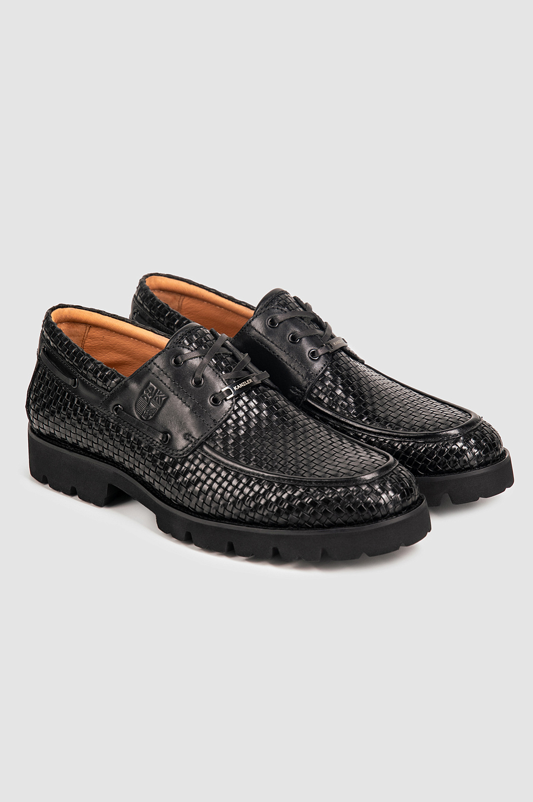 Черные топсайдеры KANZLER из натуральной кожи — роскошная версия классической яхтенной обуви, которая уже перестала быть привилегией яхтсменов и предназначена для расслабленных уикендов и неформальных выходов в бар, кафе, клуб, кинотеатр, на экскурсию или просто прогулку. Модель сохраняет основные традиционные детали — шов на мыске, кожаный шнурок, протянутый вокруг задника и устойчивую нескользящую рифленую подошву. Кожаный верх придаёт топсайдерам выразительность и шик. Чёрный цвет делает обувь универсальной и подходящей практически к любой одежде в стиле кежуал и умный кежуал.