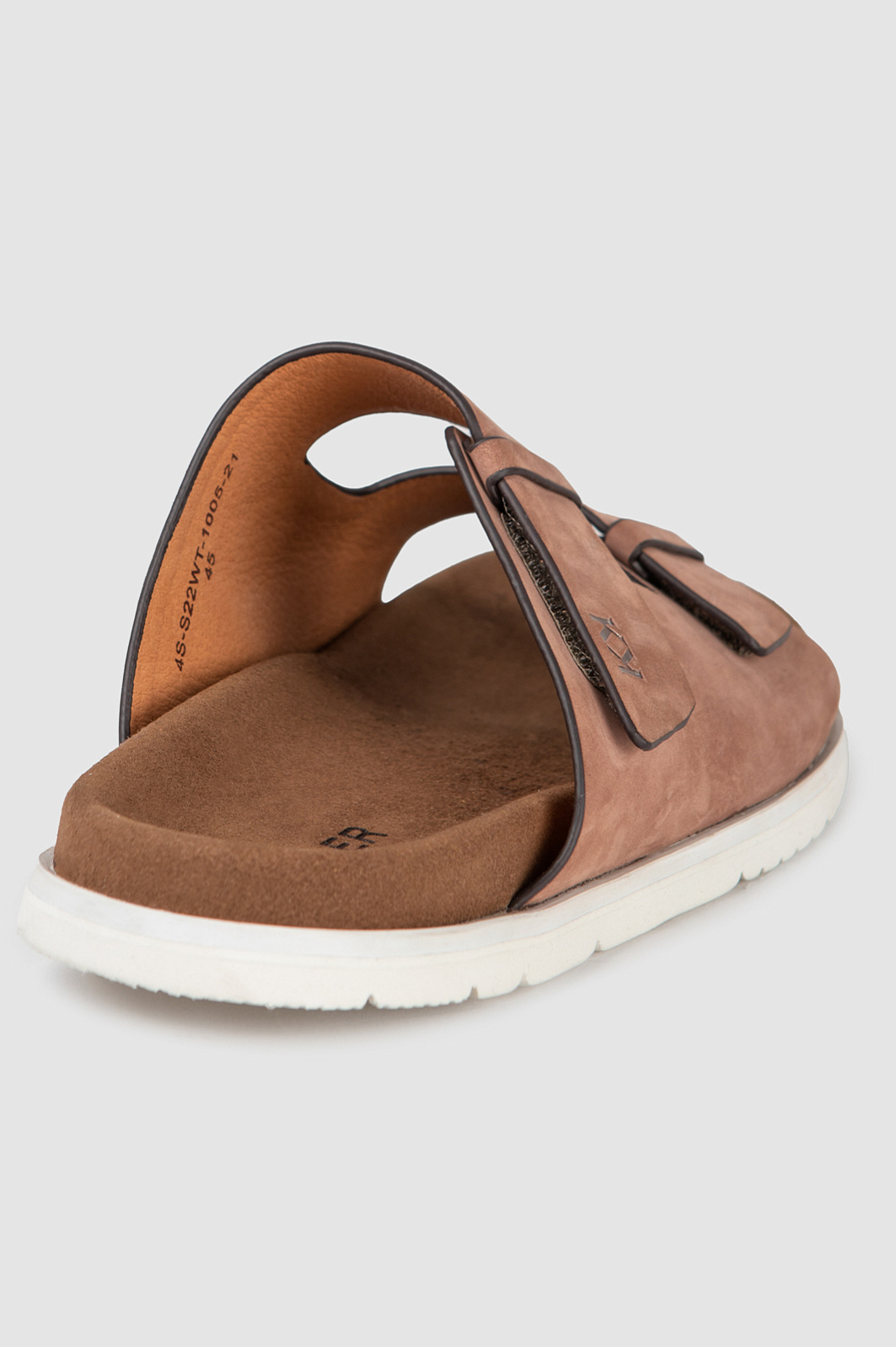 Мужские сандалии в благородном оттенке мокко для стильных летних образов. Бархатистая поверхность натуральной кожи особенно красива в этом трендовом оттенке на контрасте с белой подошвой - актуальное сочетание для городского образа со льняными брюками и рубашкой или отпускного образа с бермудами и футболкой. Широкие перемычки обеспечивают комфортную посадку по ноге, а регулируемые ремешки на липучке позволяют добиться максимально комфортной посадки. Благодаря широкой резиновой подошве ногам будет удобно в течение долгой прогулки, и даже на каменистом пляже. Широкие перемычки дополнили логотипом бренда.