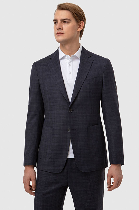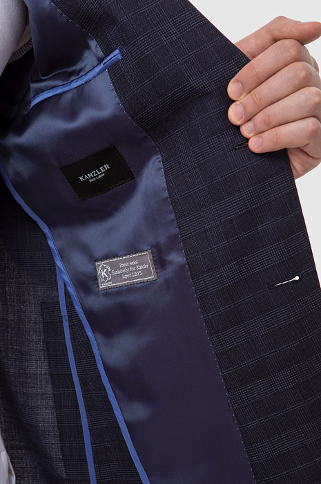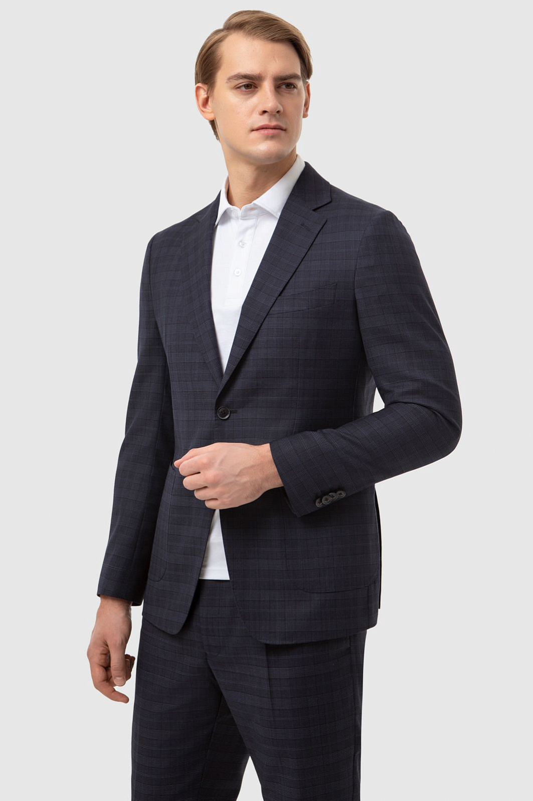 Пиджак из шерсти в клетку с водоотталкивающей обработкой, устойчивый к загрязнениям, цвет синий, цена 16 990 руб., код 267077 - купить в Санкт-Петербурге в интернет-магазине KANZLER