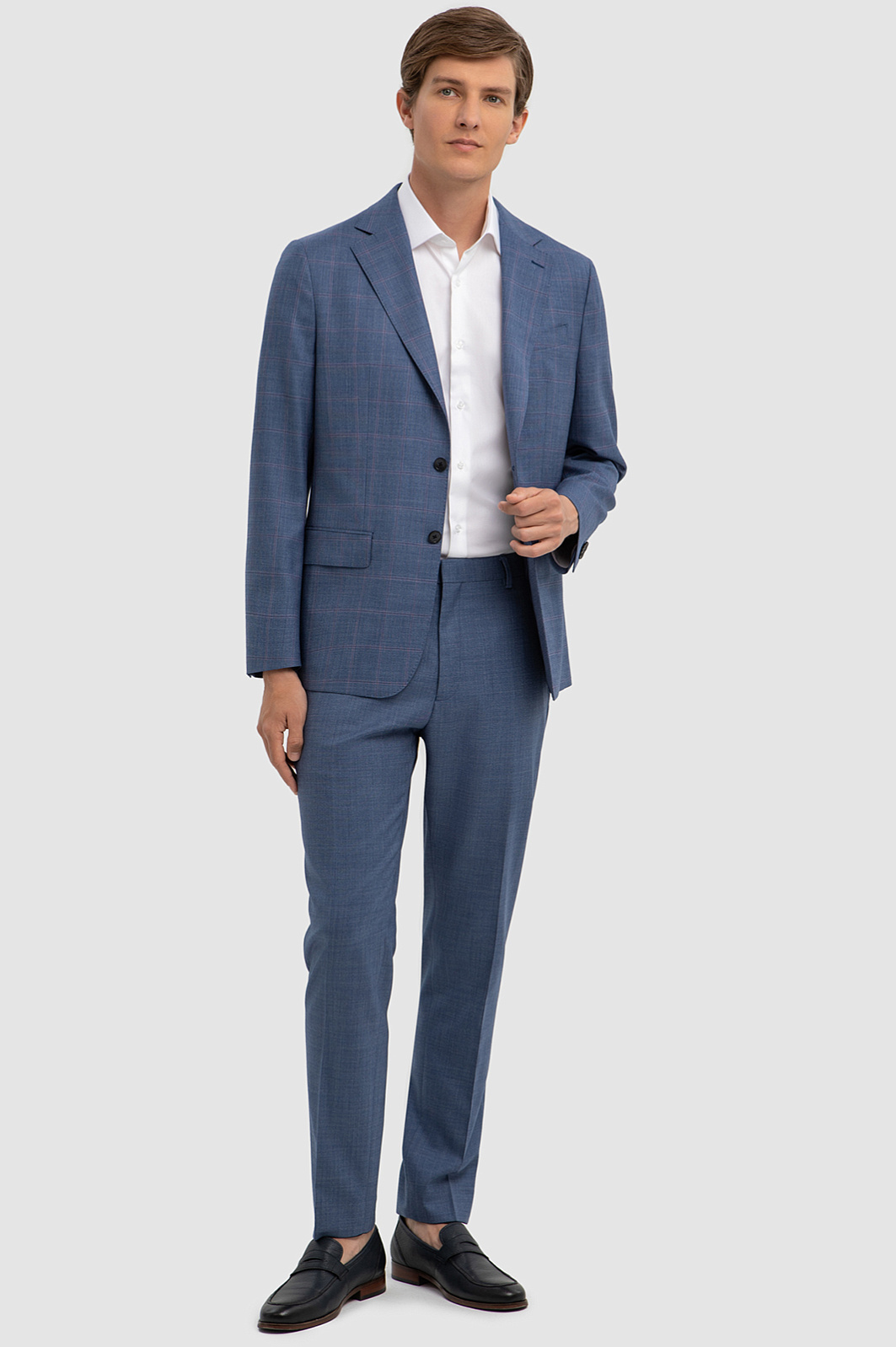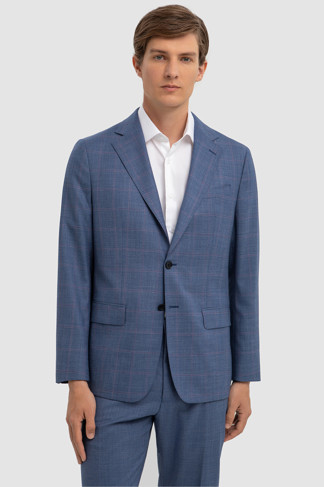 Серо-голубой пиджак KANZLER с рисунком «оконная рама». В пиджаке имеются карманы — нагрудный и нижние, прикрытые клапаном, а также внутренние — для важных мелочей и секретов. В пиджаке можно ощущать себя элегантно и непринужденно в любой обстановке. Полуприлегающий силуэт не сковывает движений, а тонкая дорогая шерсть Супер 120S поддерживает комфортную для тела температуру. Благодаря непревзойденному качеству и водоотталкивающим свойствам ткани, пиджак с достоинством переживает любые превратности судьбы: не мнется, не загрязняется и отлично держит форму. Параметры модели: рост 191, 97-77-99 Размер на модели: 50