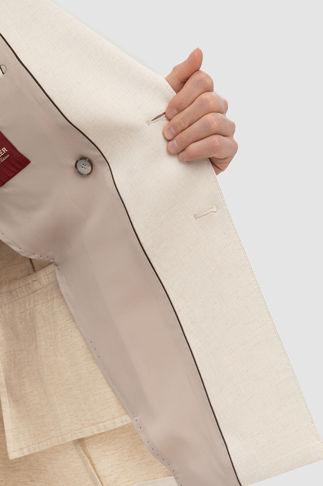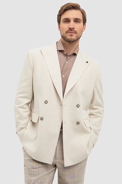 Пиджак из хлопка и льна, лимитированная коллекция, цвет бежевый, цена 15 990 руб., код 267270 - купить в Санкт-Петербурге в интернет-магазине KANZLER
